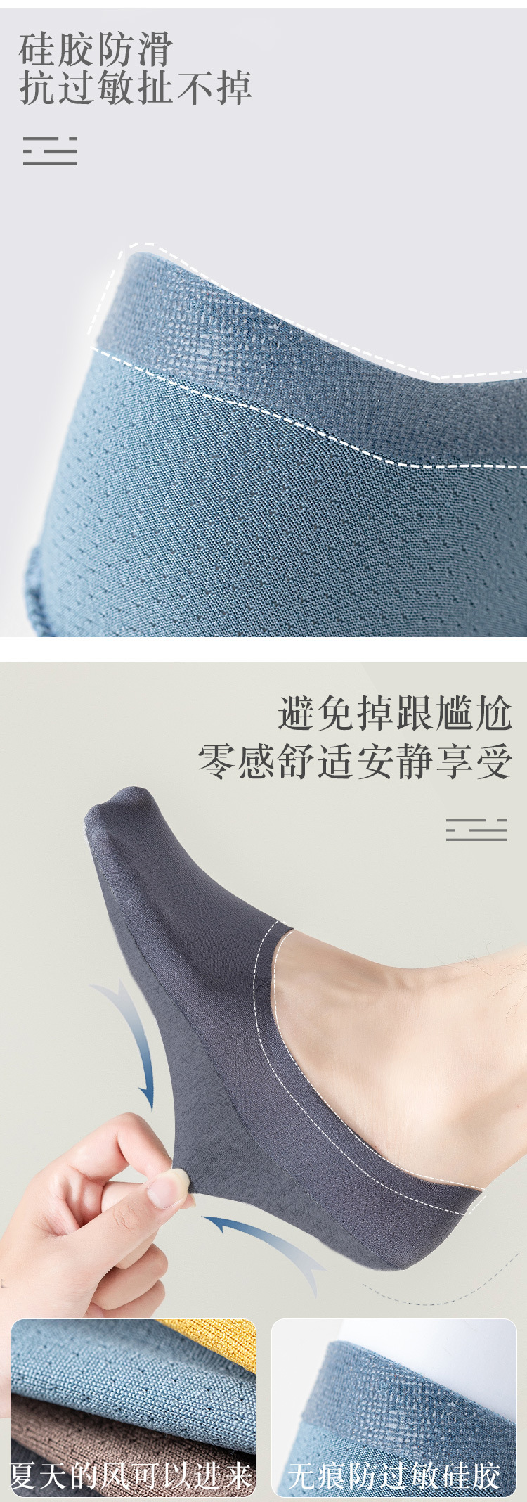 남성용 양말 여름 얇은 통기성 얼음 실크 메쉬 면 바닥 땀 흡수 양말 미끄럼 방지 및 남성용 보이지 않는 보트 양말