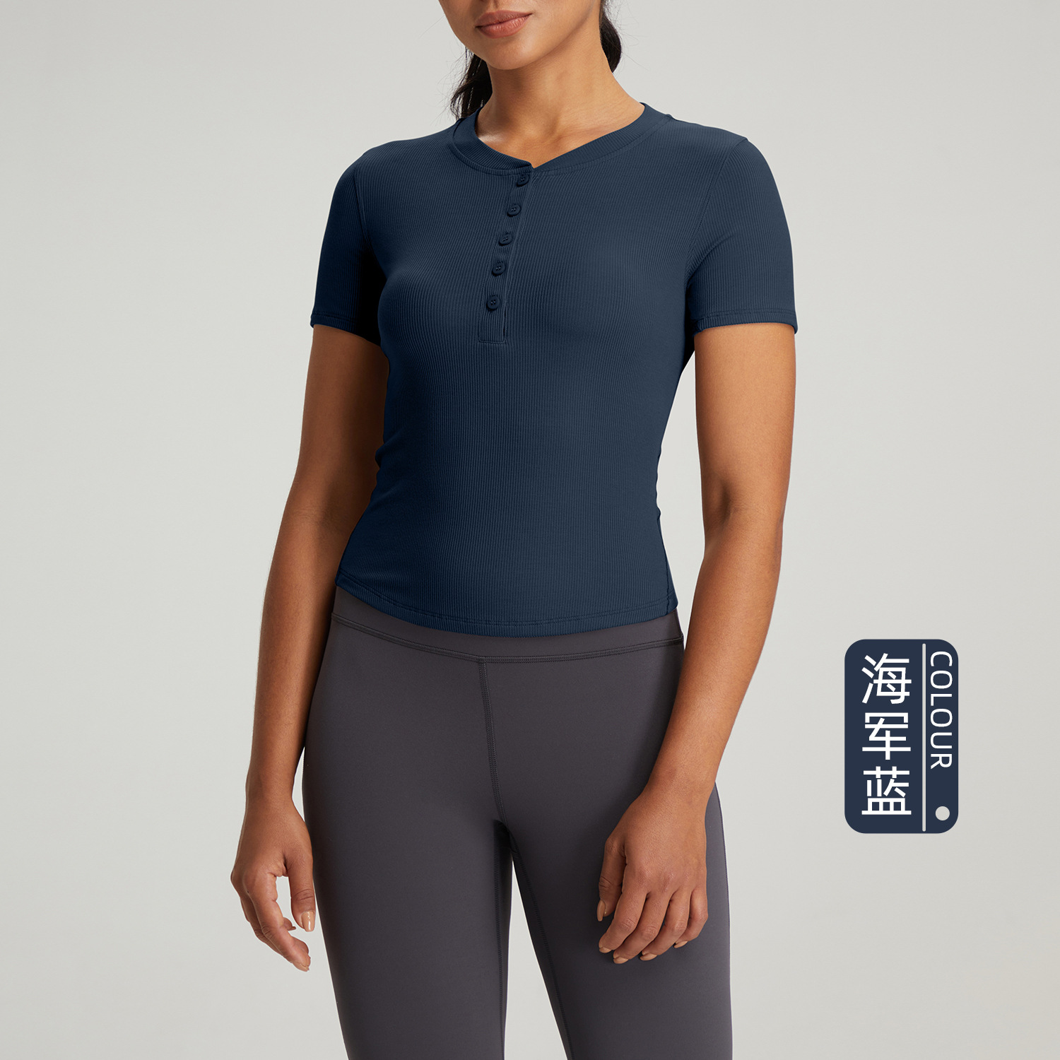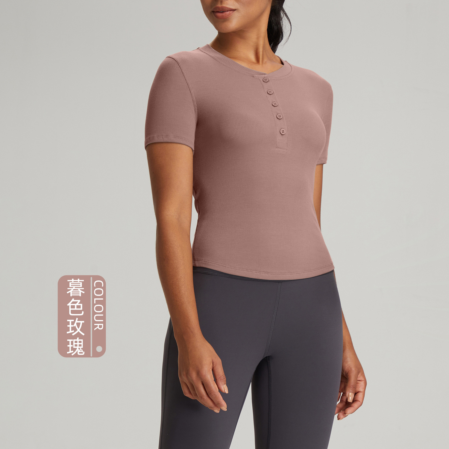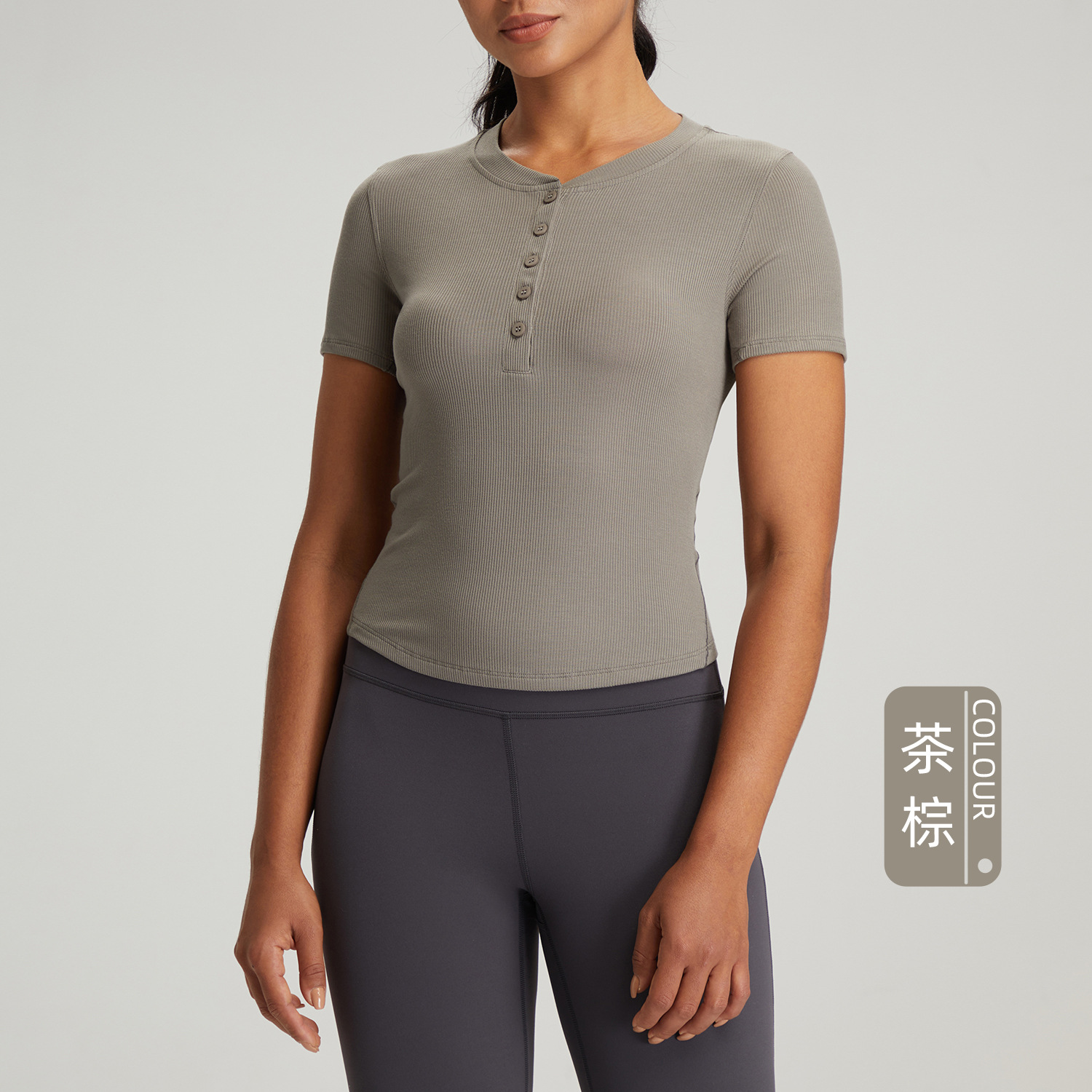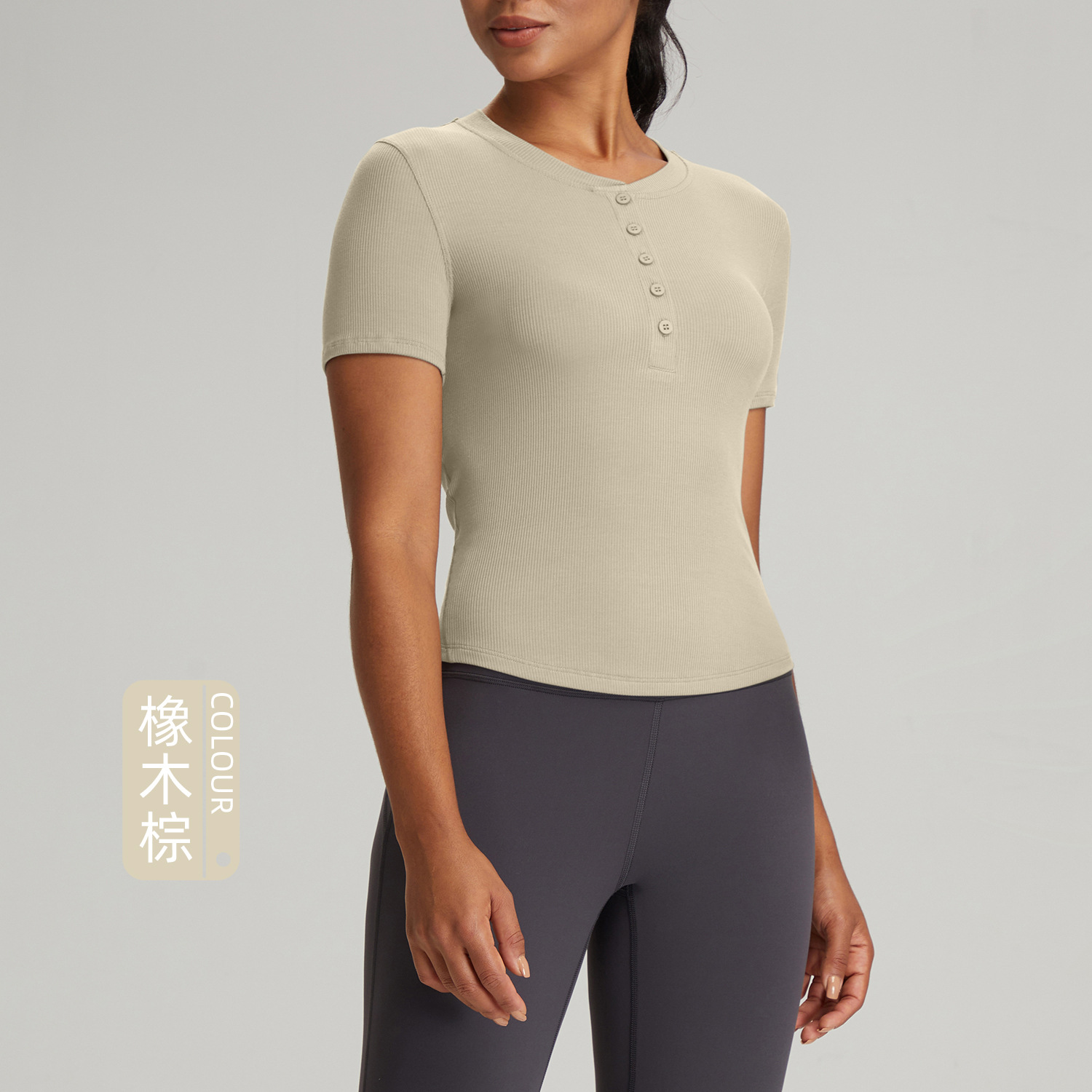 아테나 룰루 헨리 셔츠 반팔 여성용 란징 모달 리브 버튼 알몸 통기성 요가 착용 티셔츠