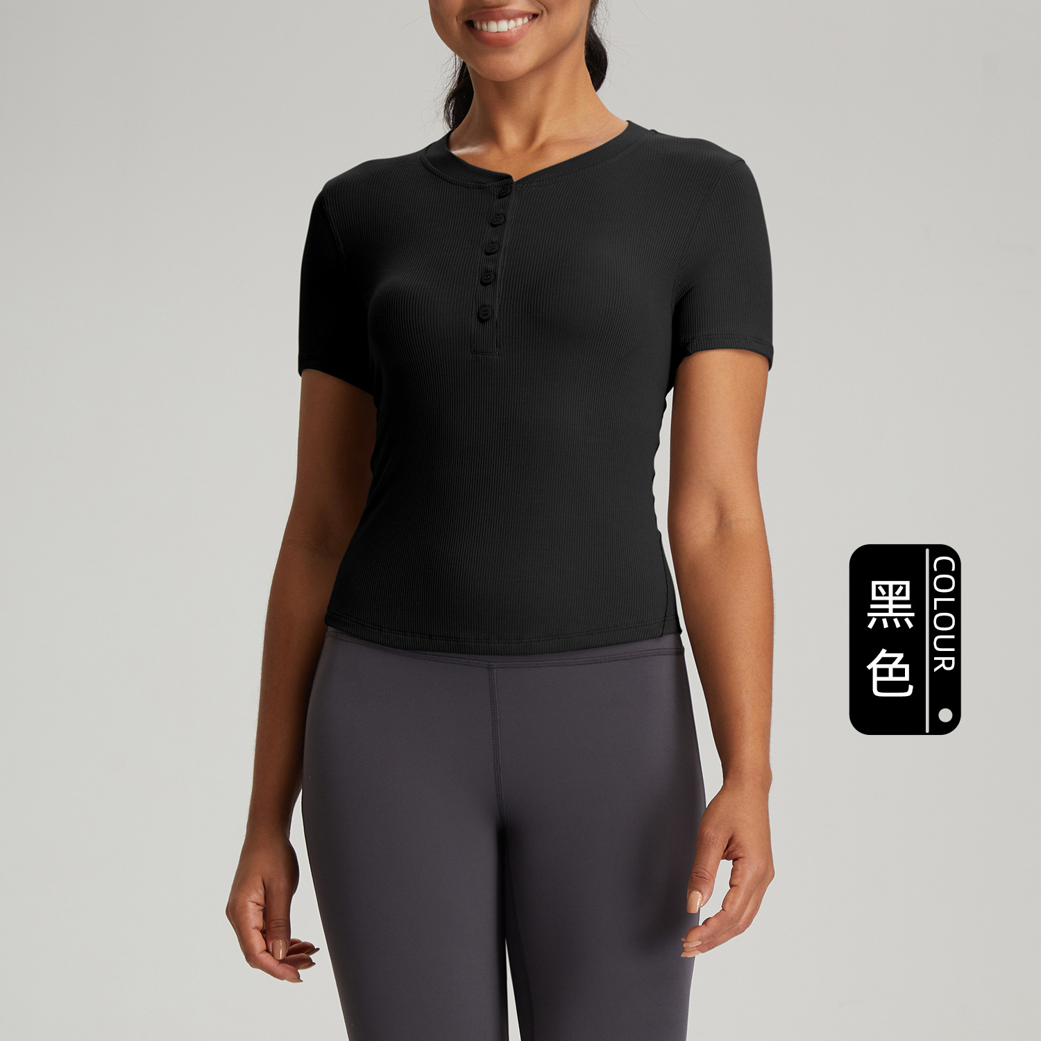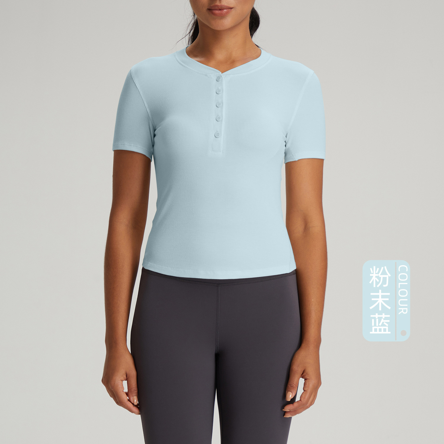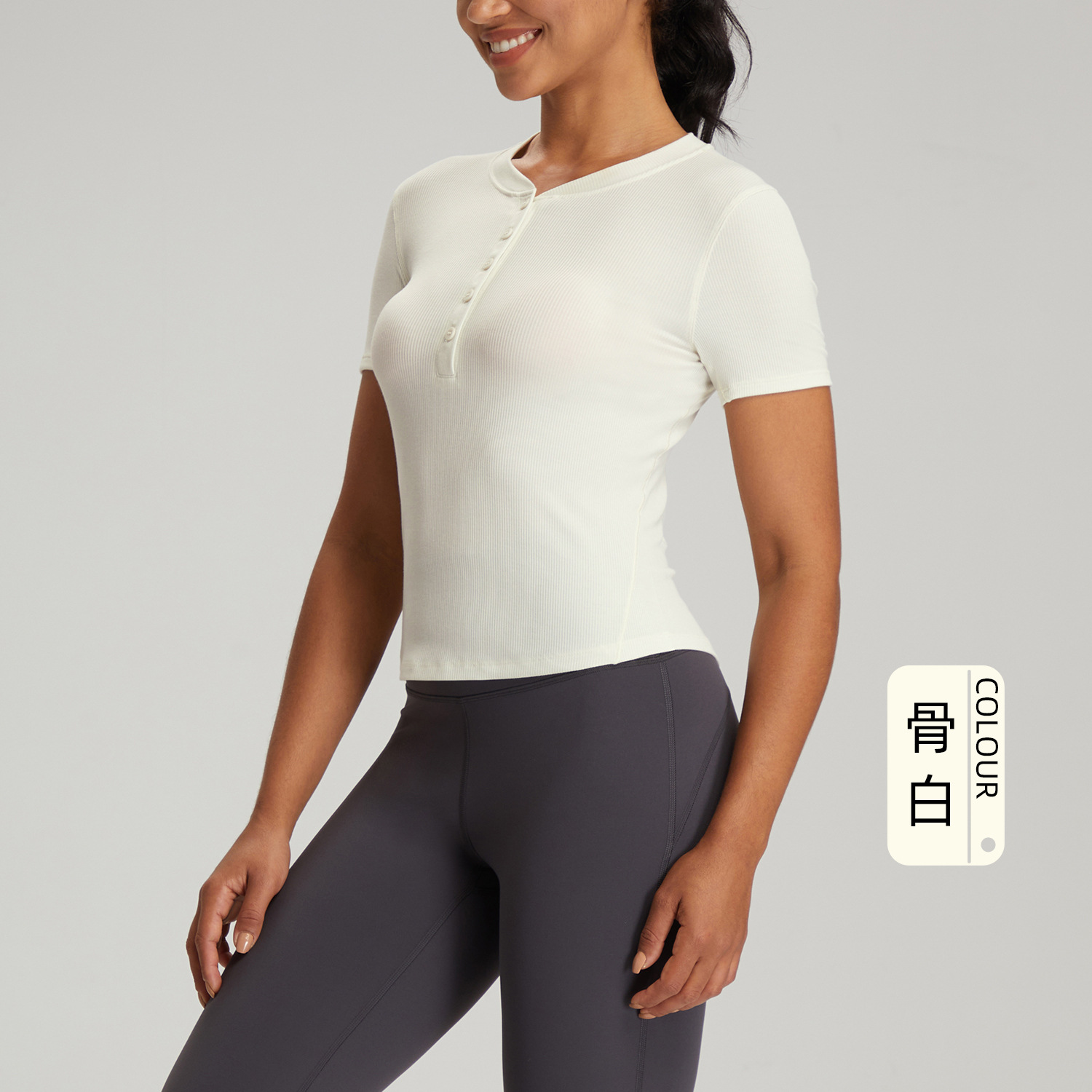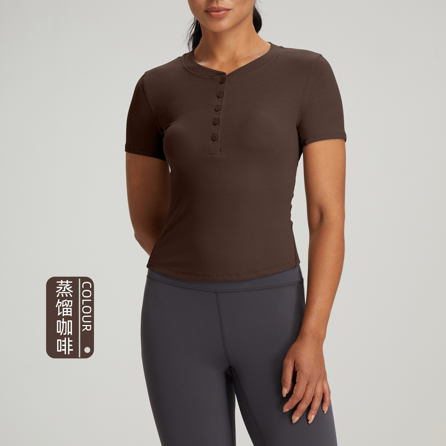 아테나 룰루 헨리 셔츠 반팔 여성용 란징 모달 리브 버튼 알몸 통기성 요가 착용 티셔츠