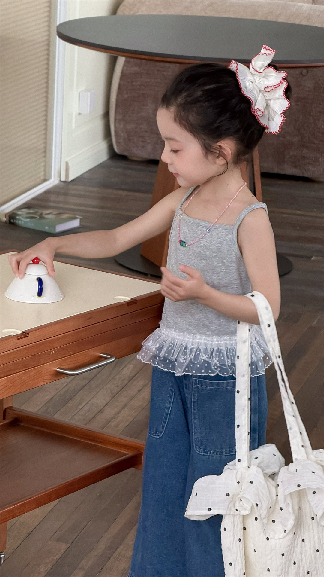 【555 클리어런스, 반품/교환 불가】세련된 2025년 여름 신상 여아용 얇은 조끼, 달콤한 상의