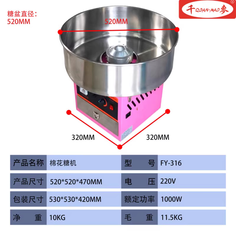 • FY-316 전기 가열식 마시멜로 기계(트롤리 포함)