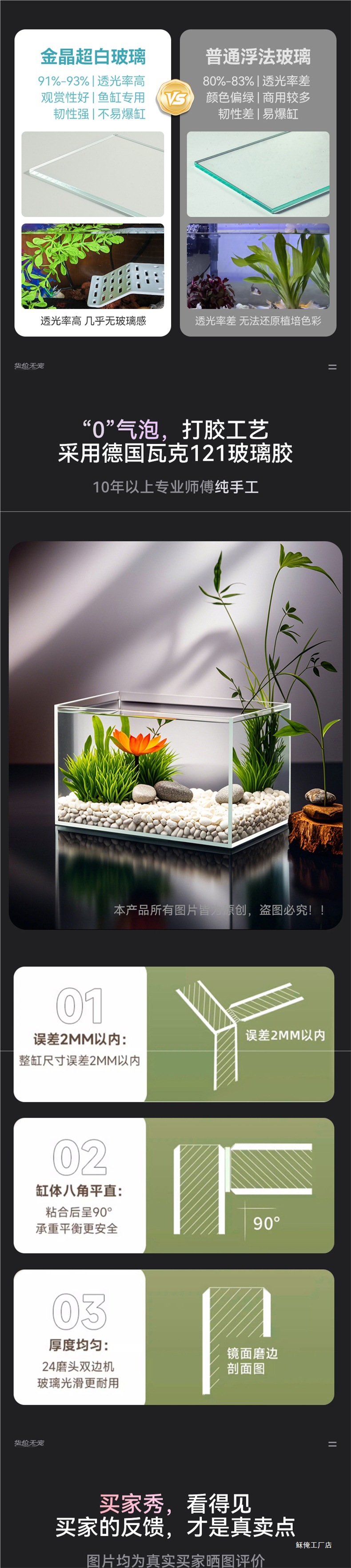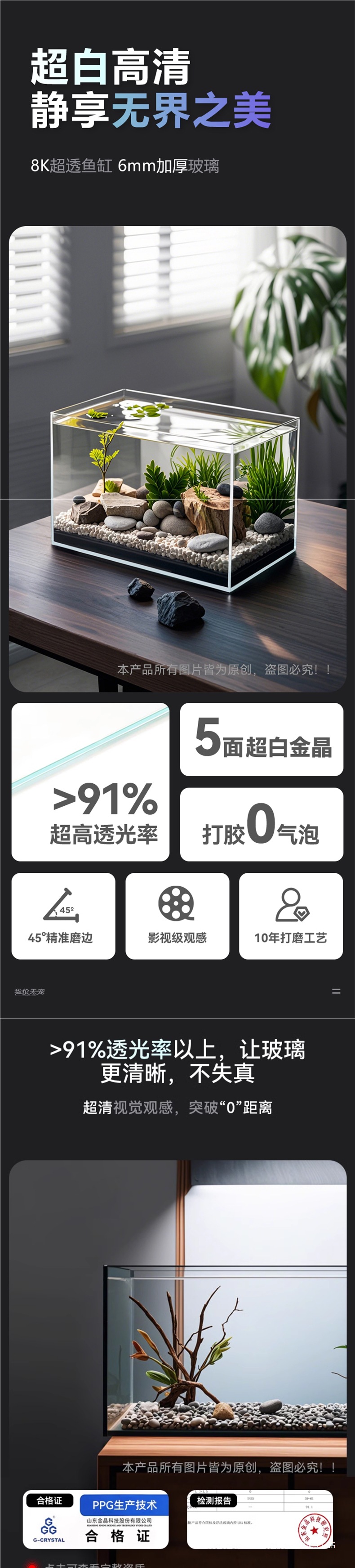 2025 새로운 슈퍼 화이트 어항 거실 작은 금 크리스탈 유리 광장 거북이 생태 스트림 탱크 홈 데스크톱