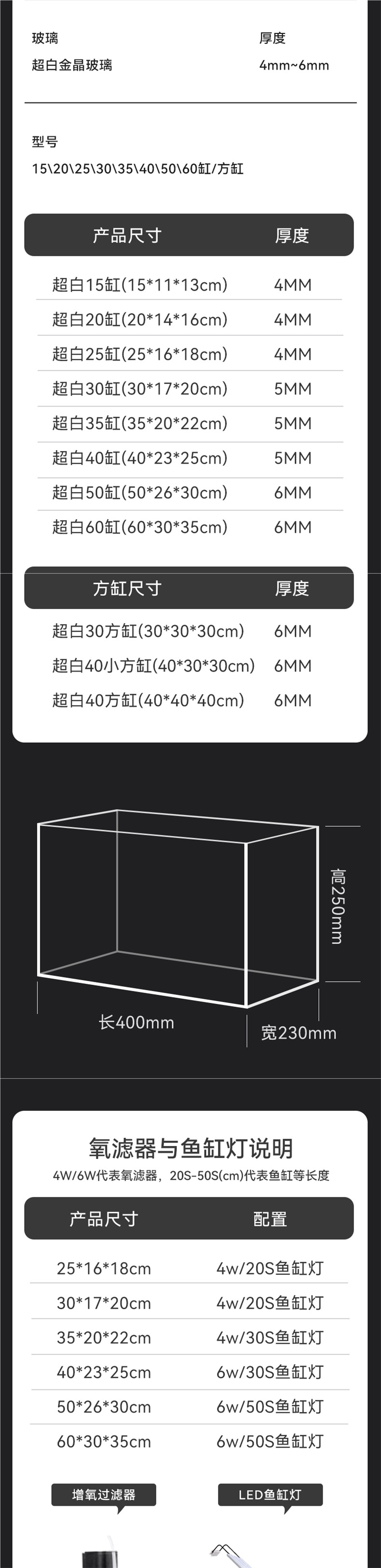 • [럭셔리 패키지 - SF Door to Door] 진징 슈퍼 화이트 35 수조(35*20*22cm) 두께 5mm(선물 패키지 + 산소 필터 펌프 4w + 수조 조명)