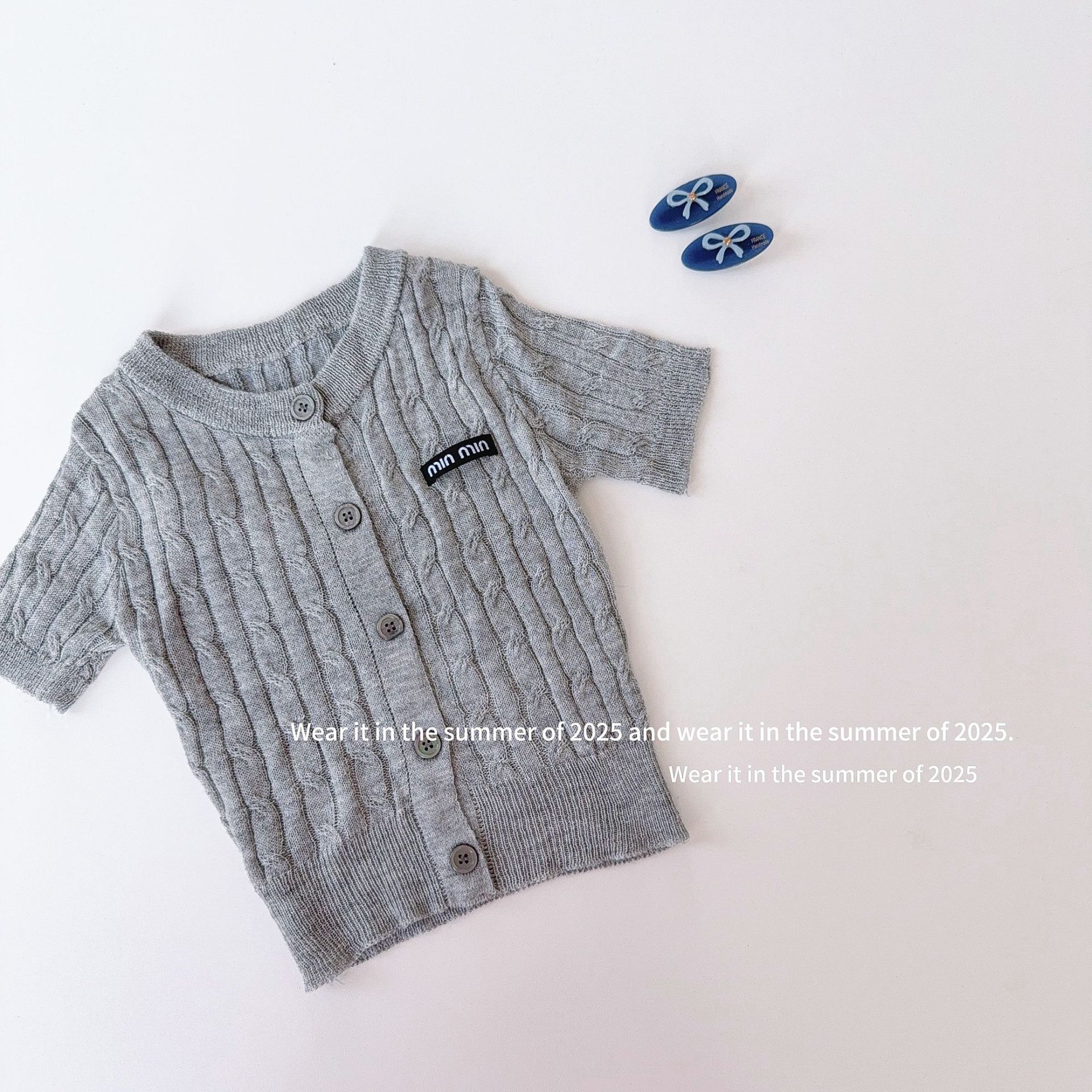 여자 아이스 실크 트위스트 편지 자수 니트 스웨터 2025 여름 여성을위한 새로운 한국 단색 짧은 소매 탑스토어 가기