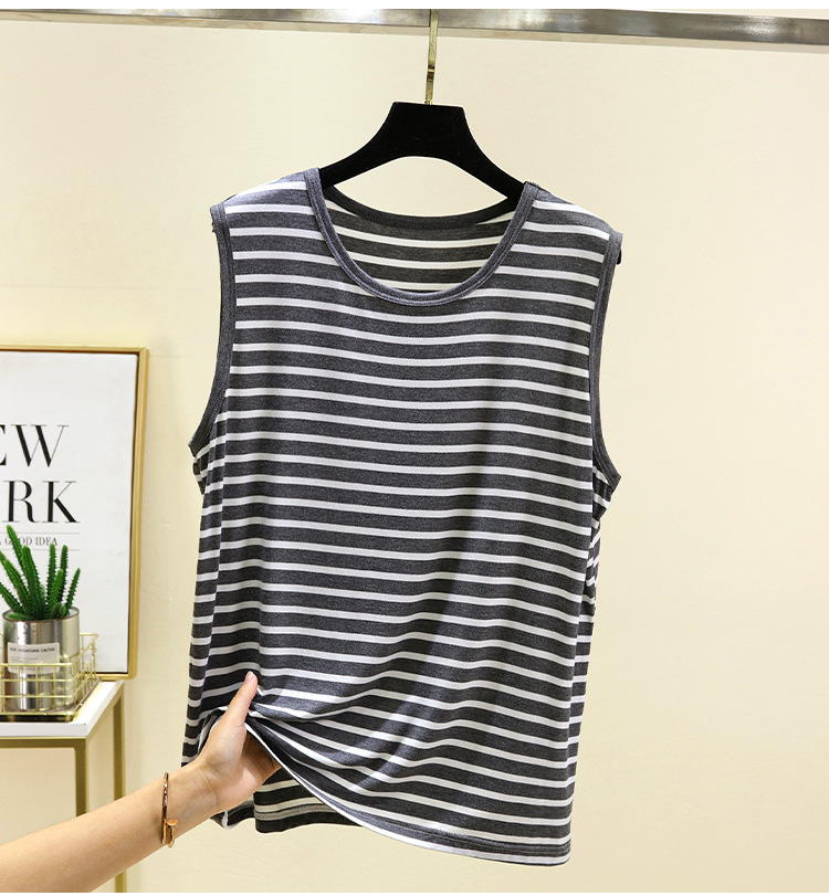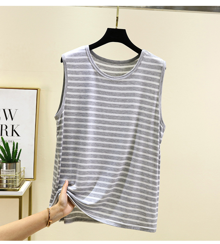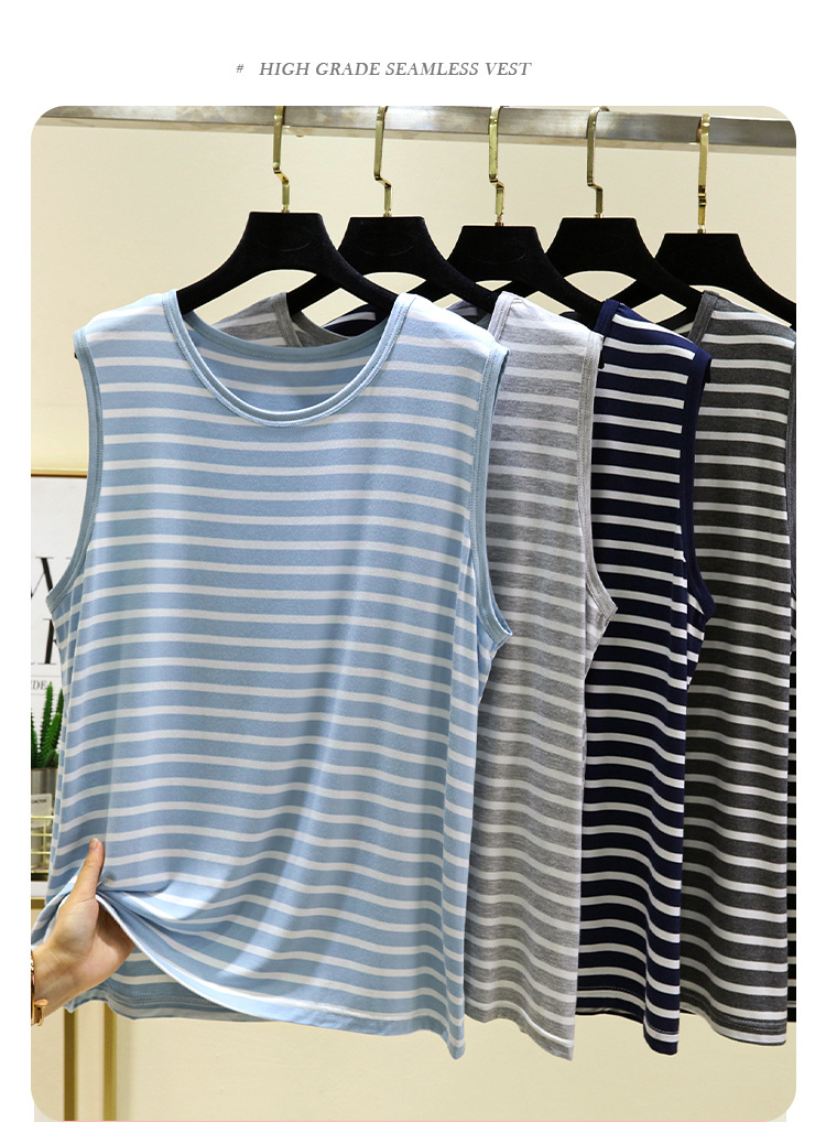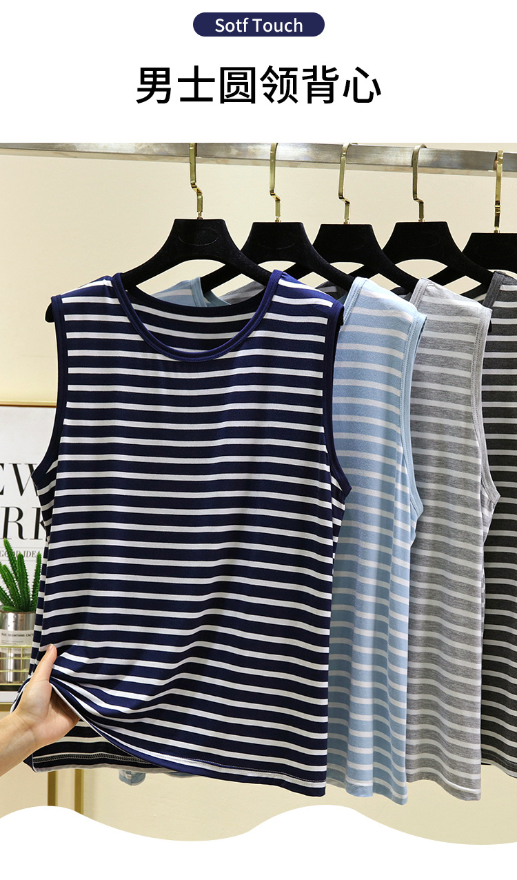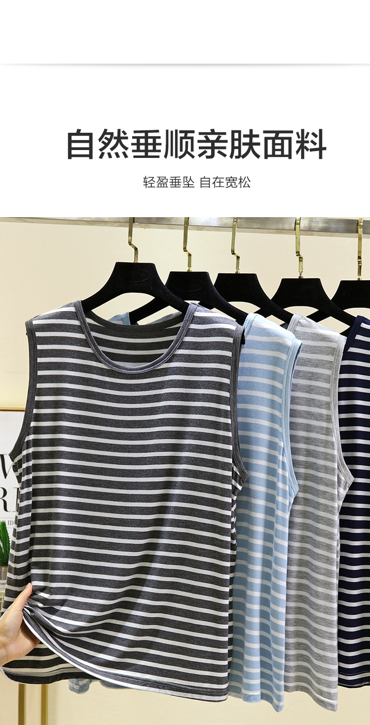 남성용 모달 줄무늬 조끼 여름 얇은 민소매 허들 티셔츠 탑 플러스 사이즈 느슨한 파자마 홈 옷스토어 가기