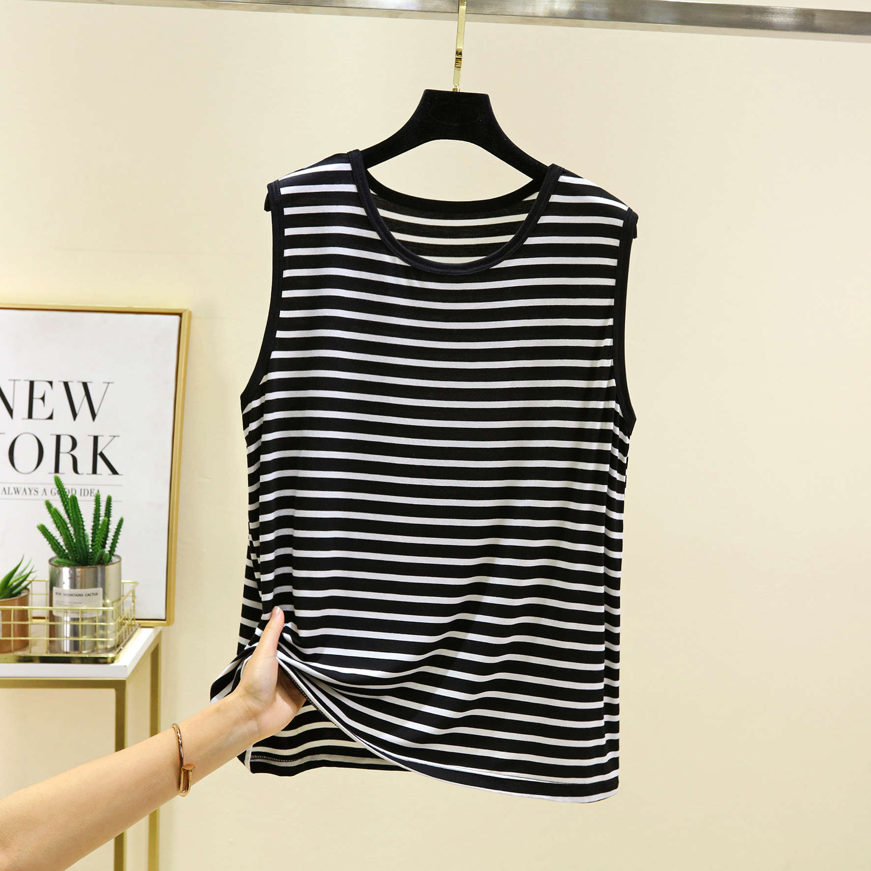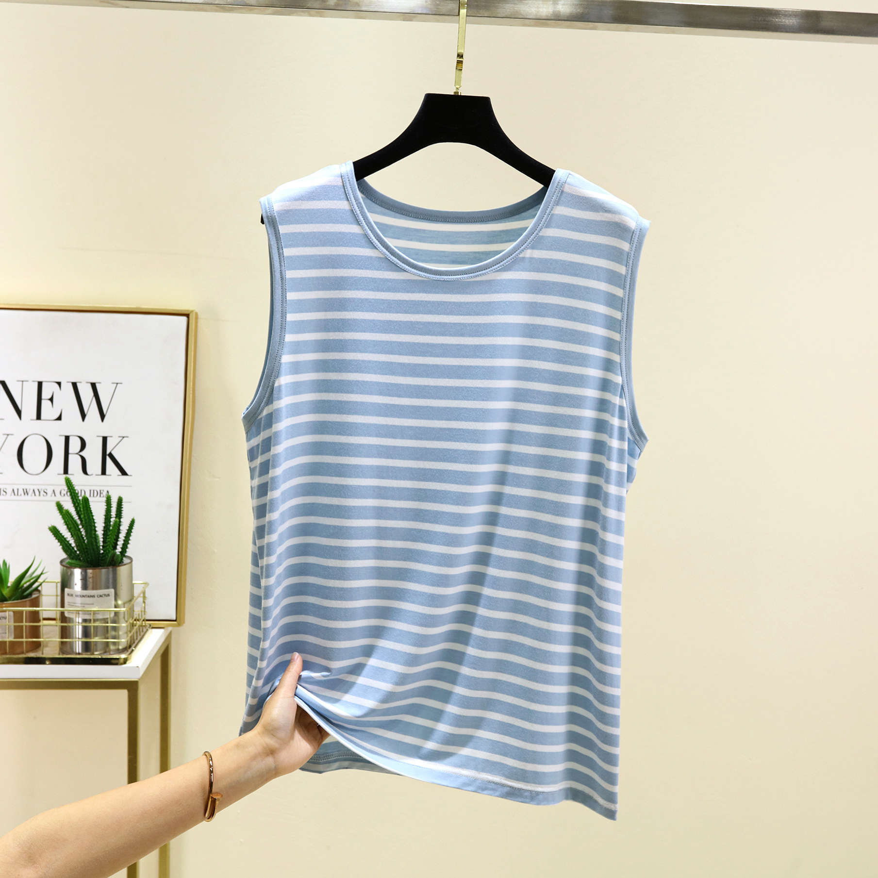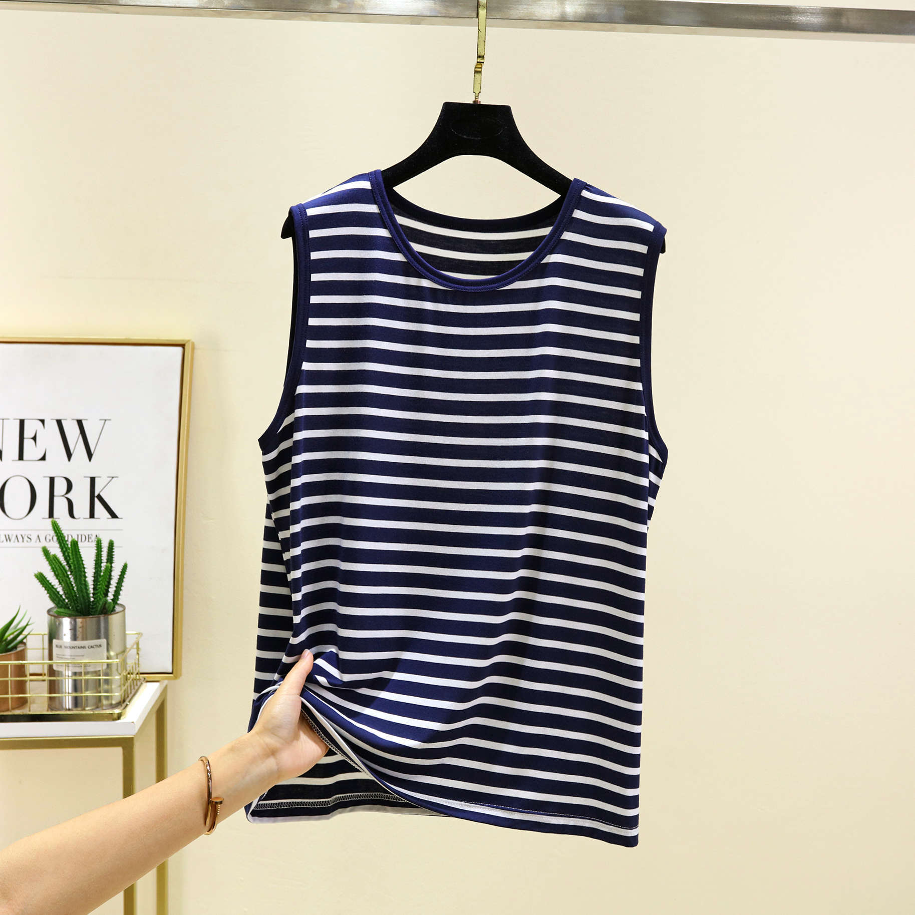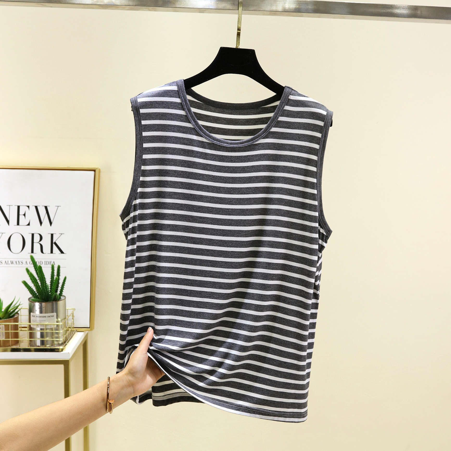 남성용 모달 줄무늬 조끼 여름 얇은 민소매 허들 티셔츠 탑 플러스 사이즈 느슨한 파자마 홈 옷스토어 가기