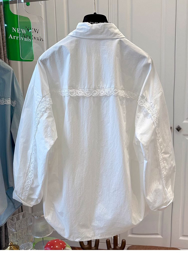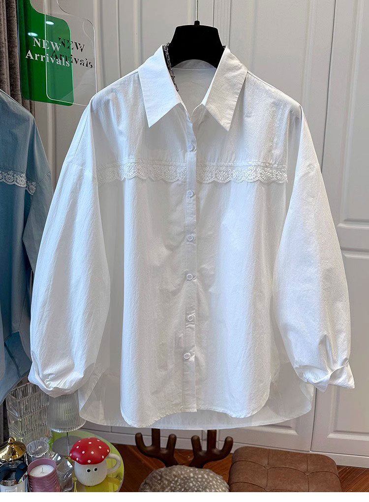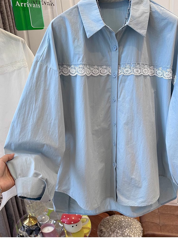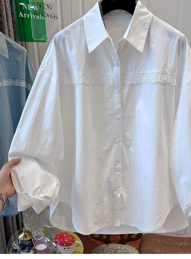 레이스 바느질 봄 긴팔 셔츠 느슨한 캐주얼 연령 감소 서양식 셔츠 여성 최고 디자인 감각 틈새 새로운 스타일스토어 가기