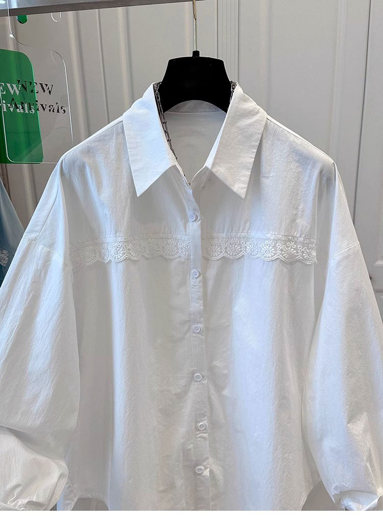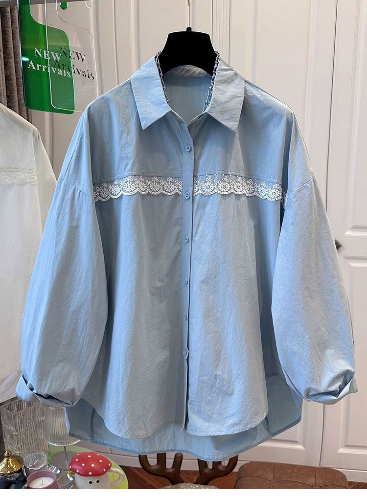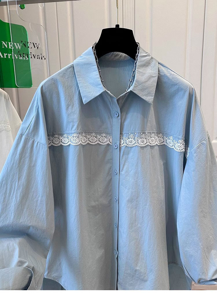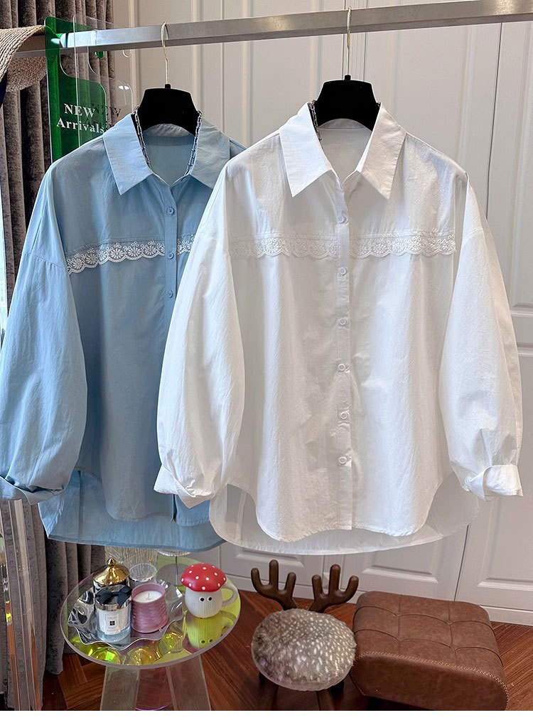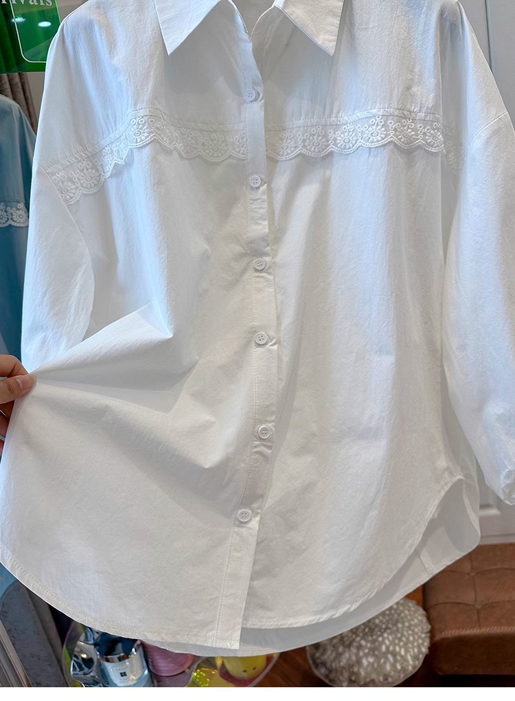 레이스 바느질 봄 긴팔 셔츠 느슨한 캐주얼 연령 감소 서양식 셔츠 여성 최고 디자인 감각 틈새 새로운 스타일스토어 가기