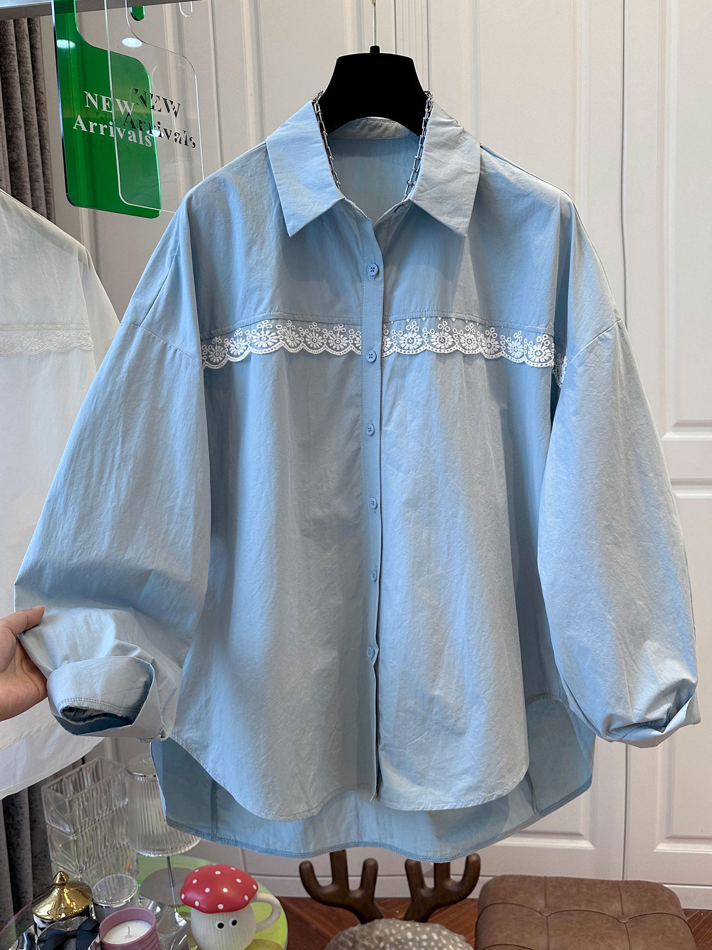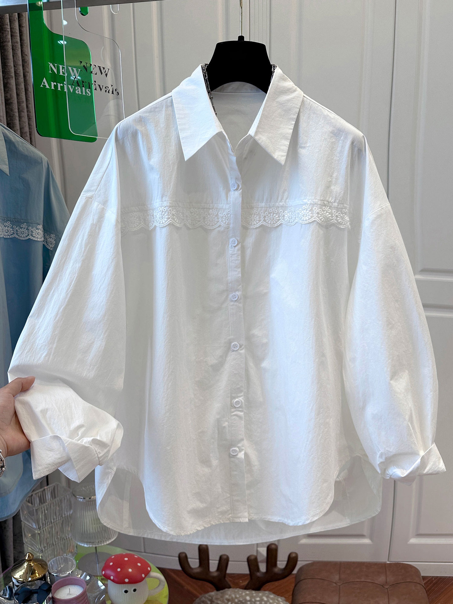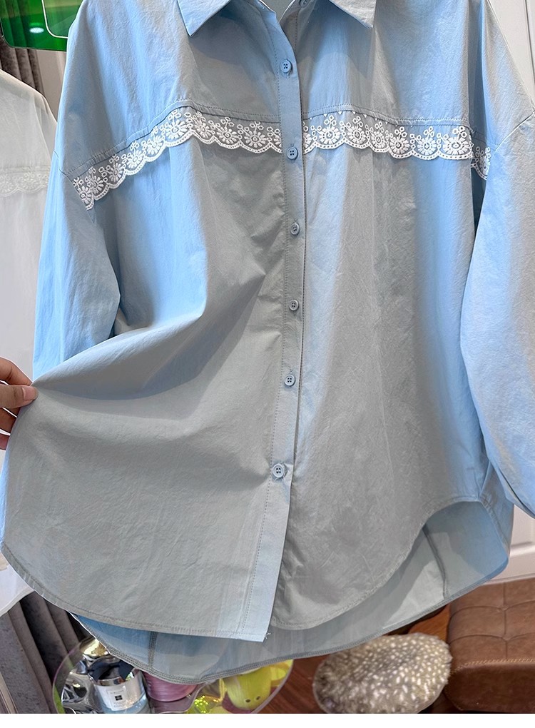레이스 바느질 봄 긴팔 셔츠 느슨한 캐주얼 연령 감소 서양식 셔츠 여성 최고 디자인 감각 틈새 새로운 스타일