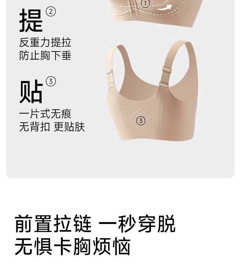 Xingjin의 같은 스타일 오리지널 큰 가슴을 작은 속옷으로 보여주는 여성용 얇은 유방 수축 및 처짐 방지 2025 앞 지퍼로 착탈이 용이함스토어 가기