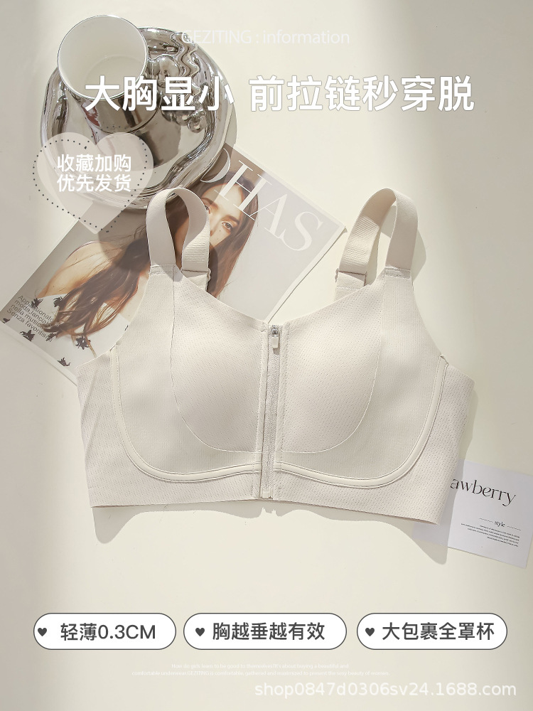 Xingjin의 같은 스타일 오리지널 큰 가슴을 작은 속옷으로 보여주는 여성용 얇은 유방 수축 및 처짐 방지 2025 앞 지퍼로 착탈이 용이함
