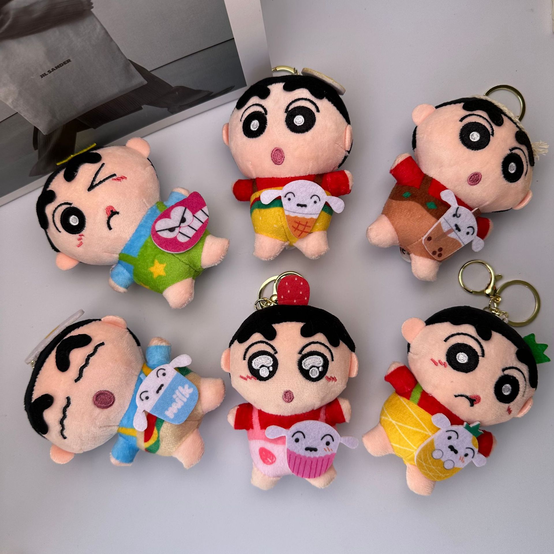 일본 귀여운 만화 플러시 장난감 4 인치 6 크레용 신짱 키 체인 펜던트 부티크 인형 기계 도매스토어 가기