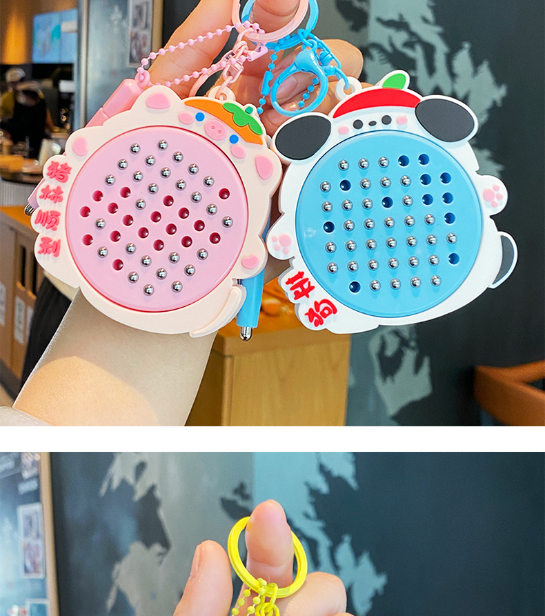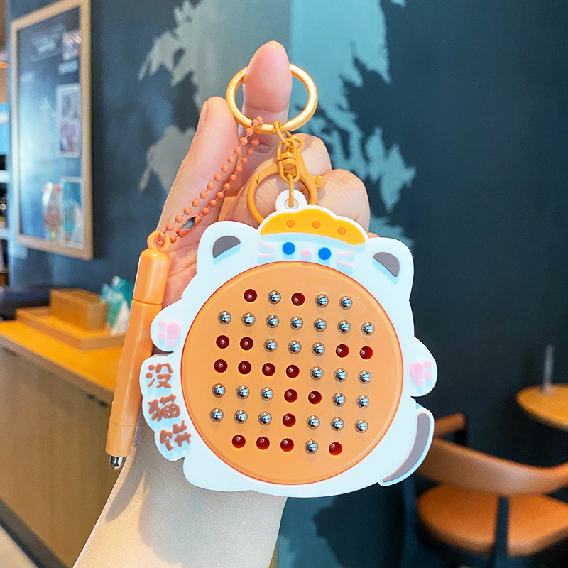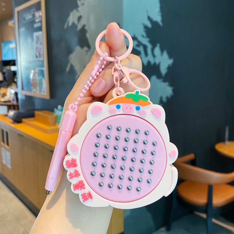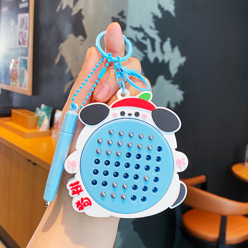 창조적 인 귀여운 애완 동물 동물 자기 강철 공 그리기 보드 키 체인 어린이 감압 장난감 책가방 펜던트 인형 열쇠 고리