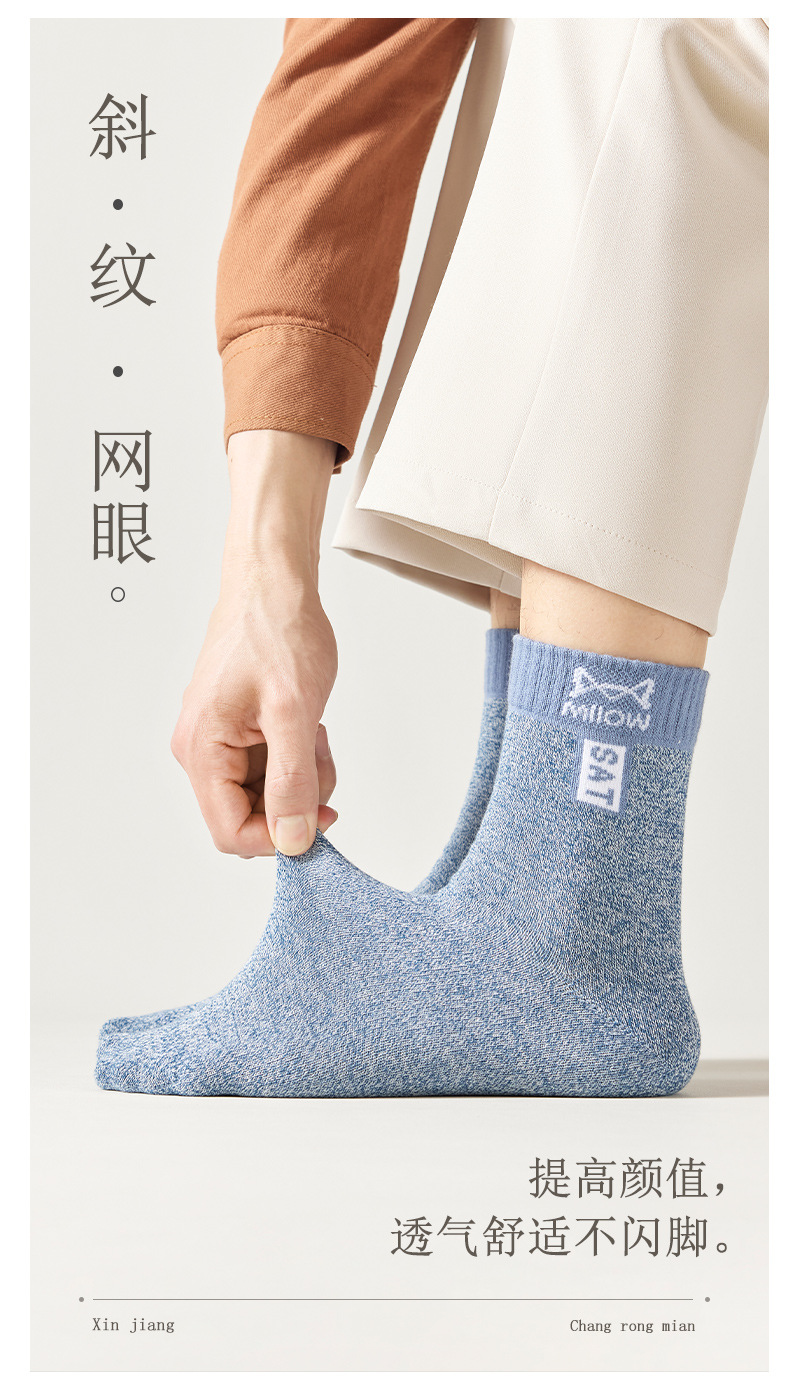 Catman 양말 남자 2025 봄과 여름 얇은 면 중간 튜브 100 항균 탈취제 땀 흡수 스포츠 모든면 양말스토어 가기
