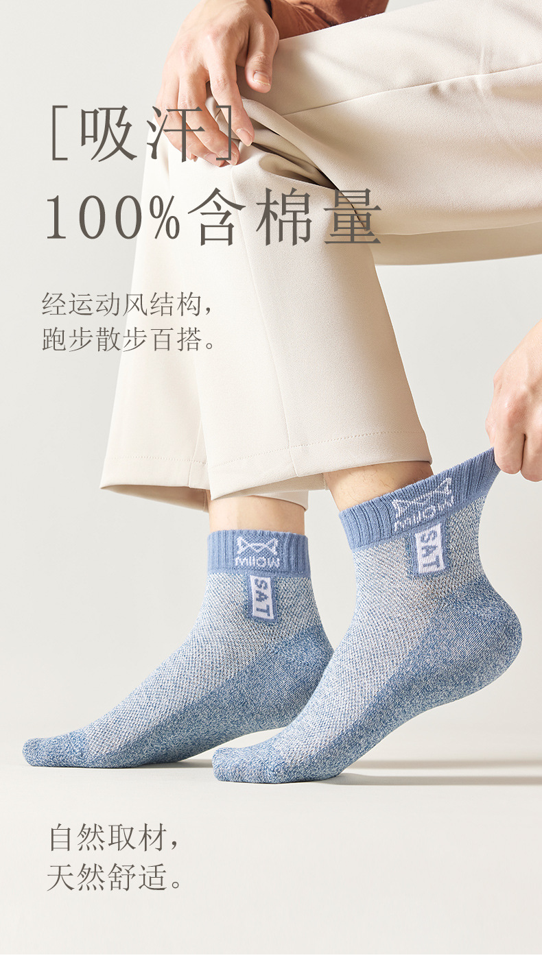 Catman 양말 남자 2025 봄과 여름 얇은 면 중간 튜브 100 항균 탈취제 땀 흡수 스포츠 모든면 양말