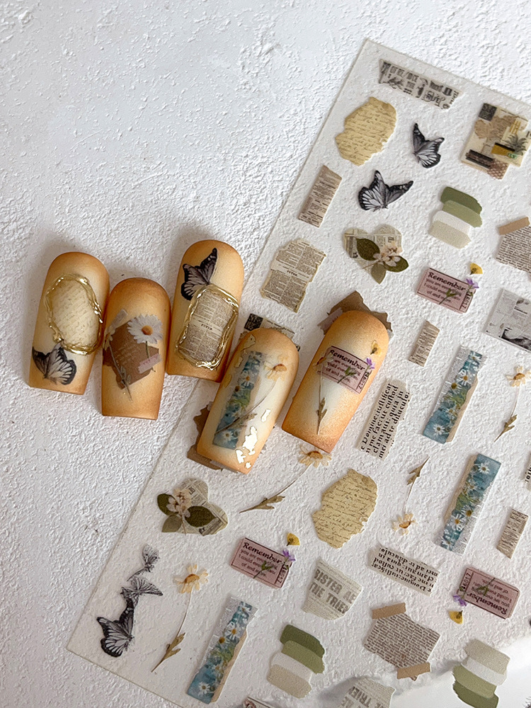 YITU 개미 그림 평면 오래된 종이 네일 아트 스티커 절묘한 유럽과 미국 복고풍 인터넷 인기있는 장식 스티커 YT4153