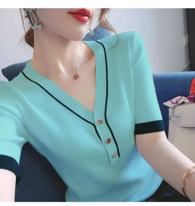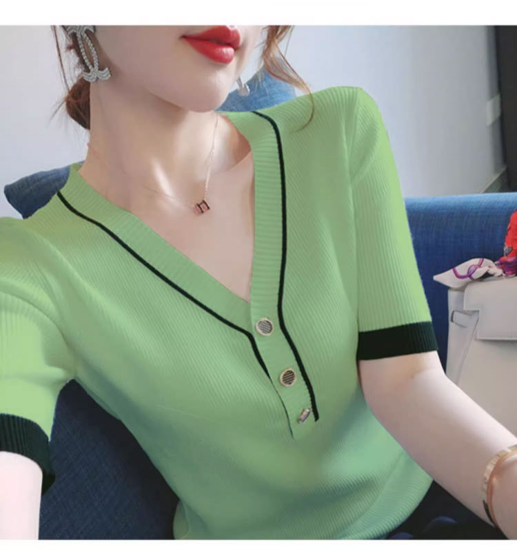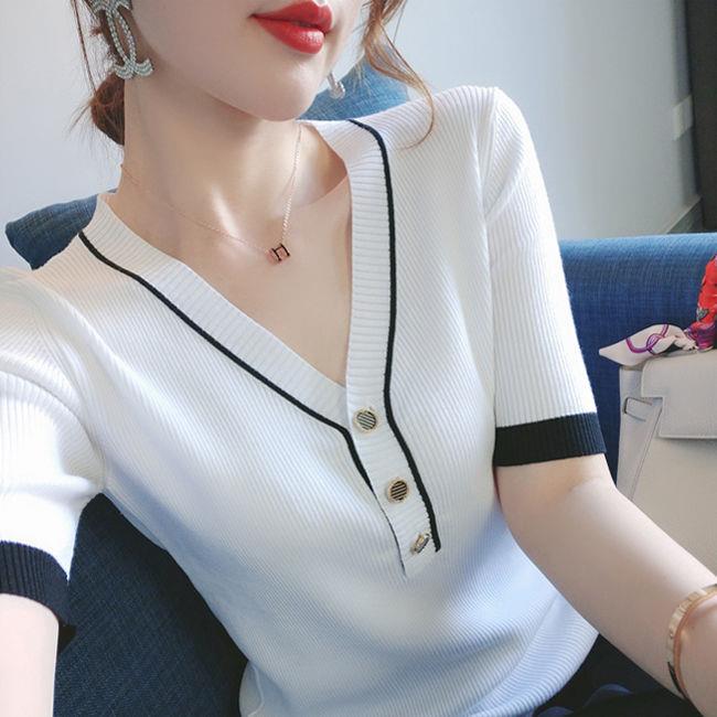 2025 새로운 뽕나무 실크 반팔 티셔츠 여자 여름 느슨한 플러스 사이즈 슬리밍 올 매치 V 넥 아이스 실크 니트 탑 얇은스토어 가기