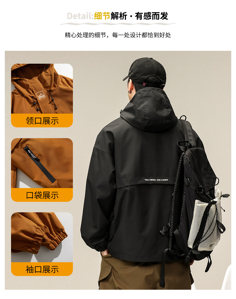 등산 및 하이킹 방풍 및 방수 후드 재킷 남성용 야외 통근 느슨하고 편안한 재킷 남성용 2025