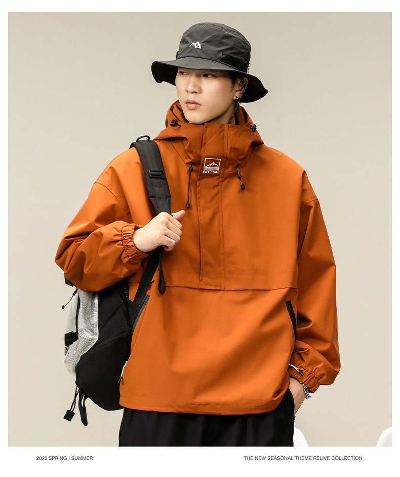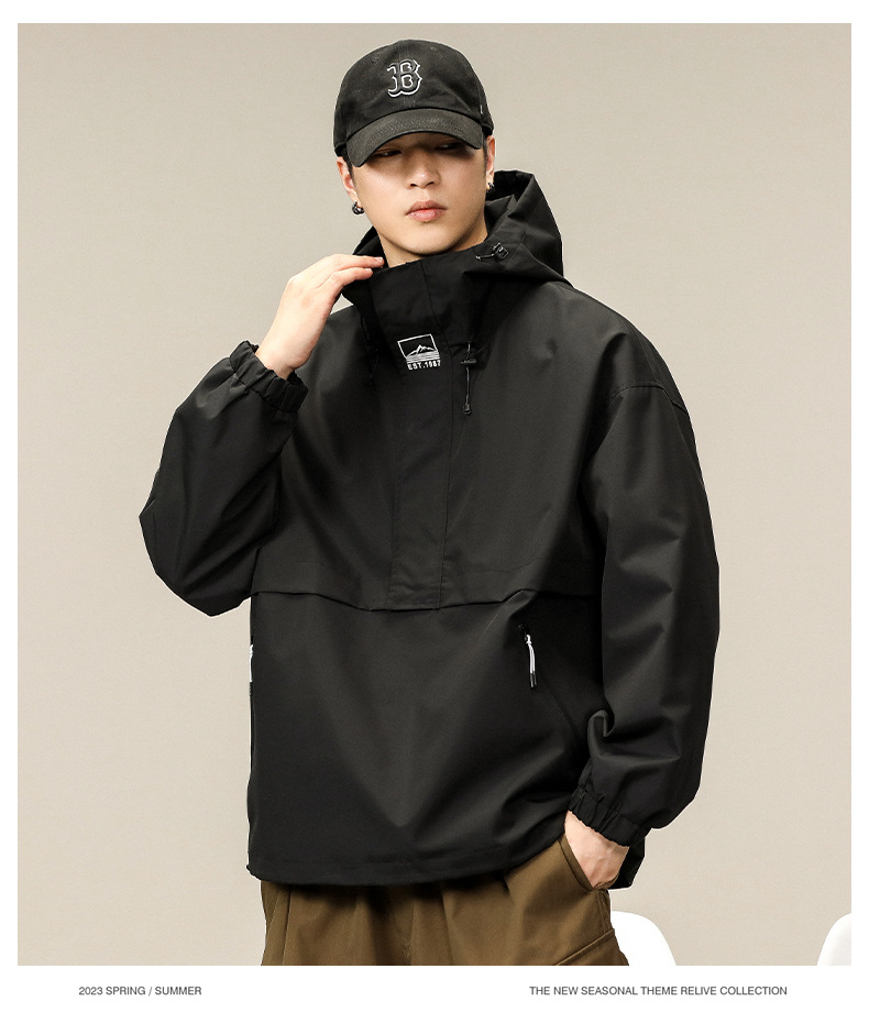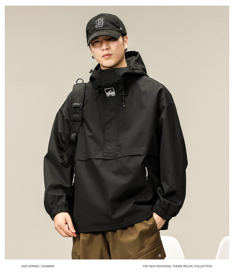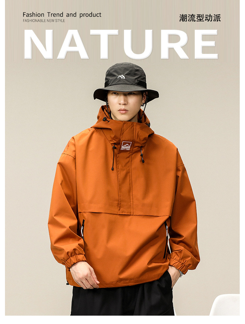 등산 및 하이킹 방풍 및 방수 후드 재킷 남성용 야외 통근 느슨하고 편안한 재킷 남성용 2025스토어 가기