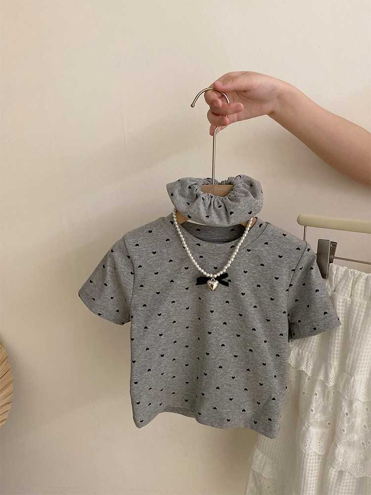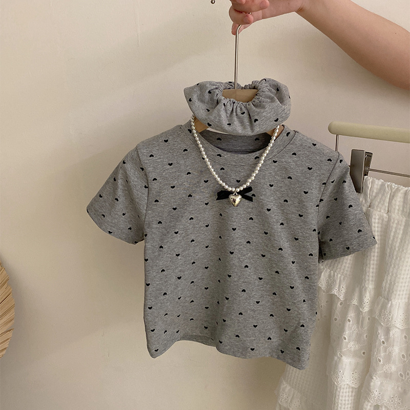 소녀 한국식 여름 2025 새로운 올매치 인쇄 사랑 반팔 최고 어린이 중공 공주 트렌디 스커트스토어 가기