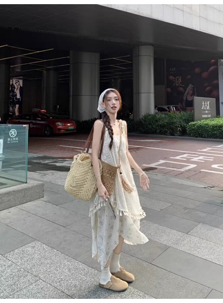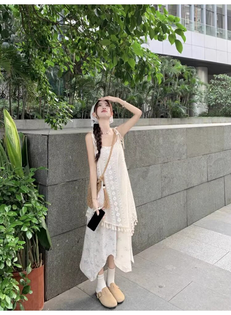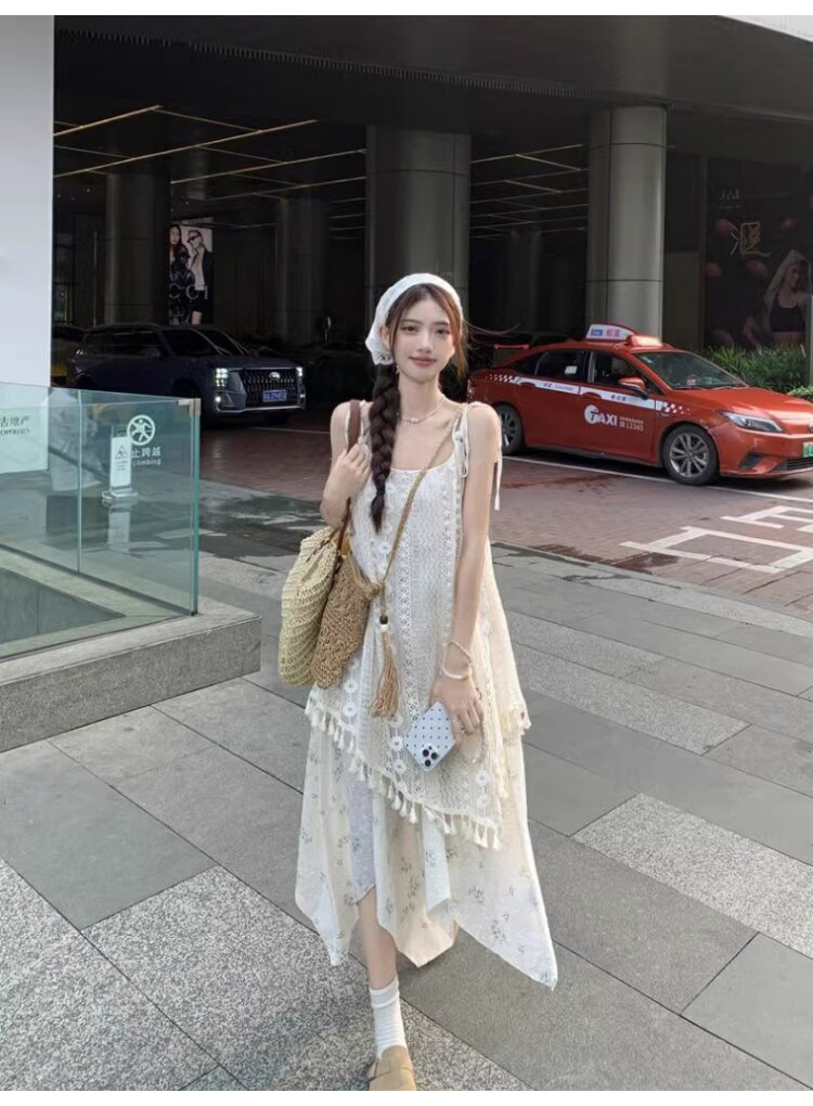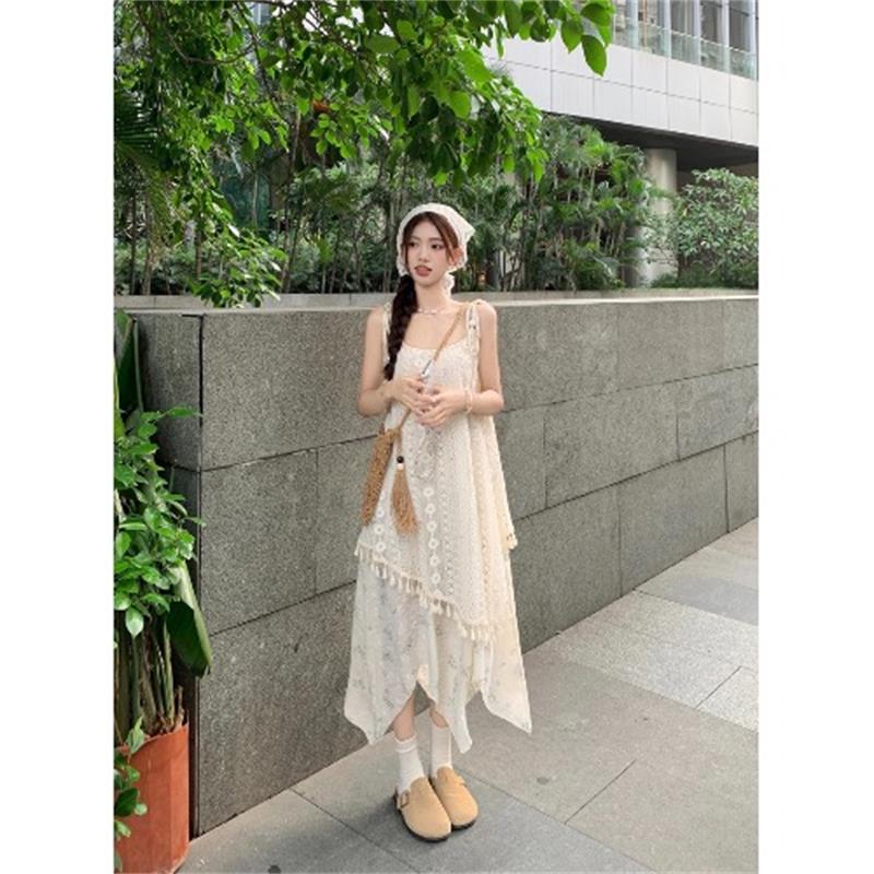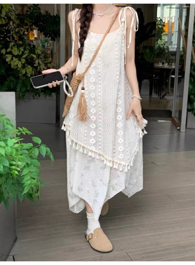 가짜 투피스 스티칭 슬링 원피스 여성 여름 새로운 술 불규칙한 디자인 틈새 시크 롱 스커트