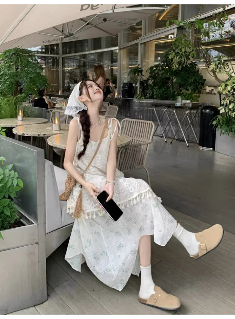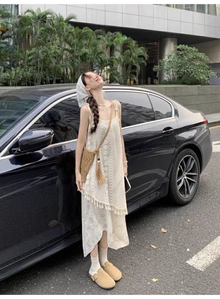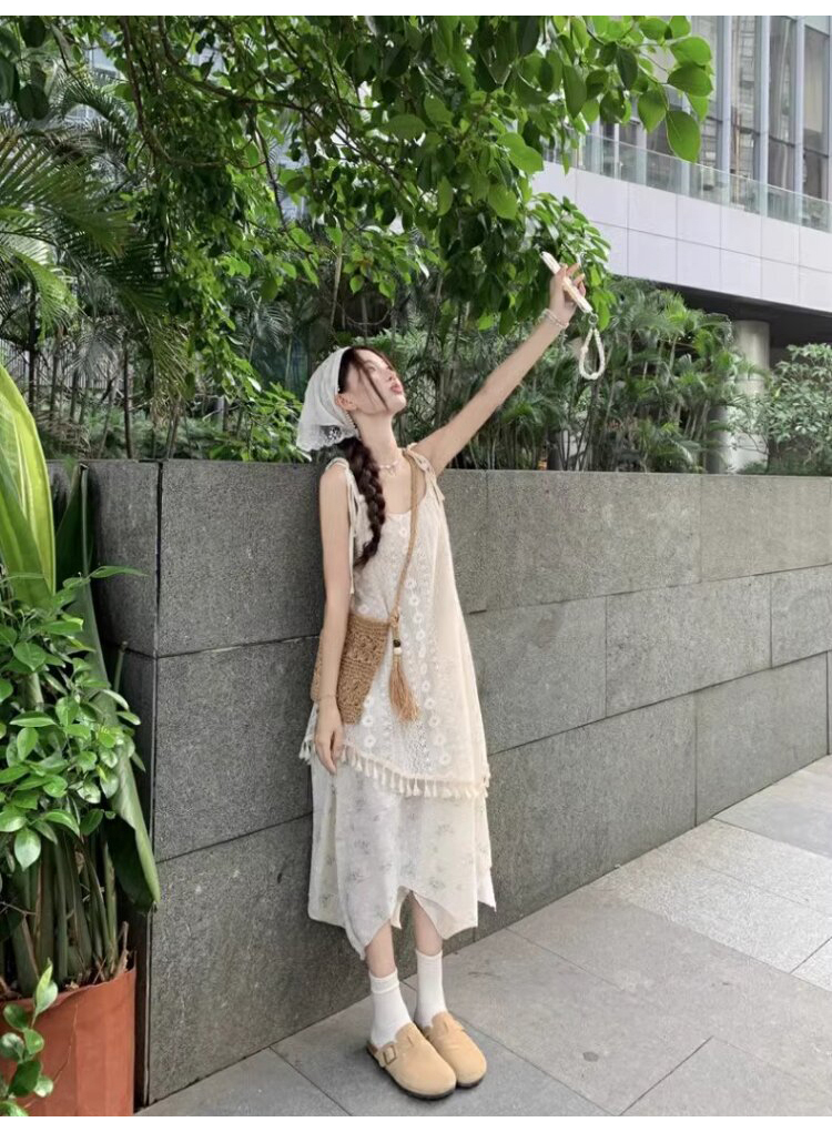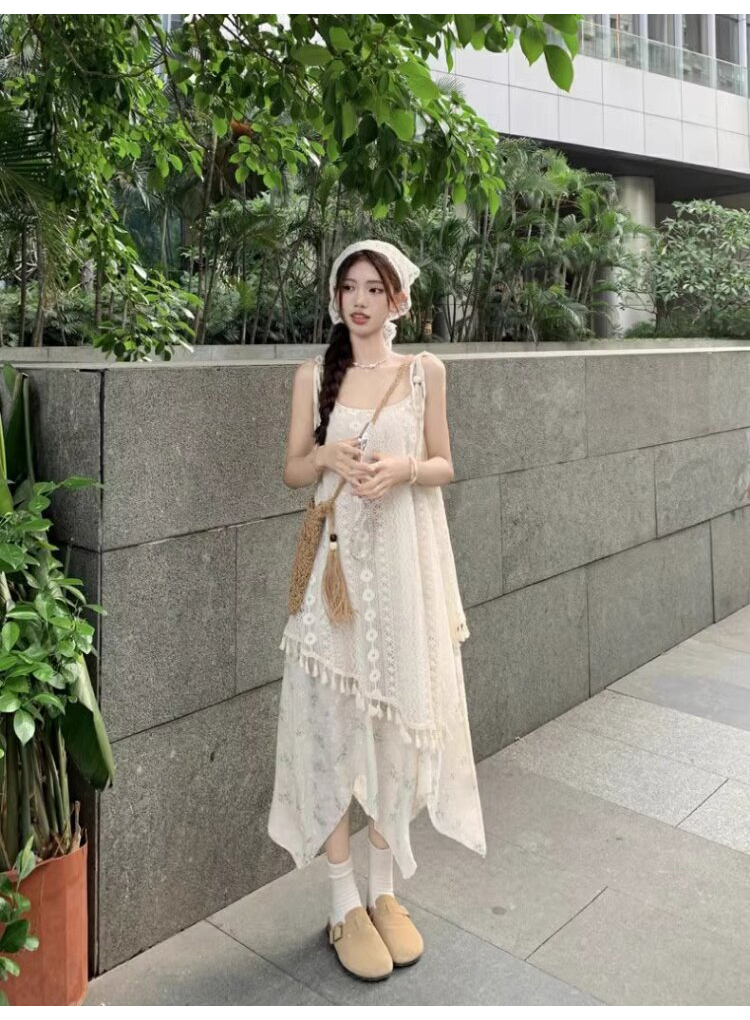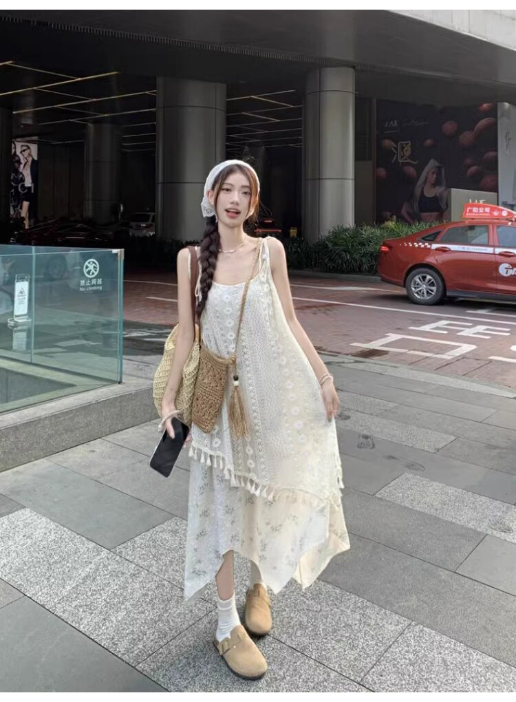 가짜 투피스 스티칭 슬링 원피스 여성 여름 새로운 술 불규칙한 디자인 틈새 시크 롱 스커트