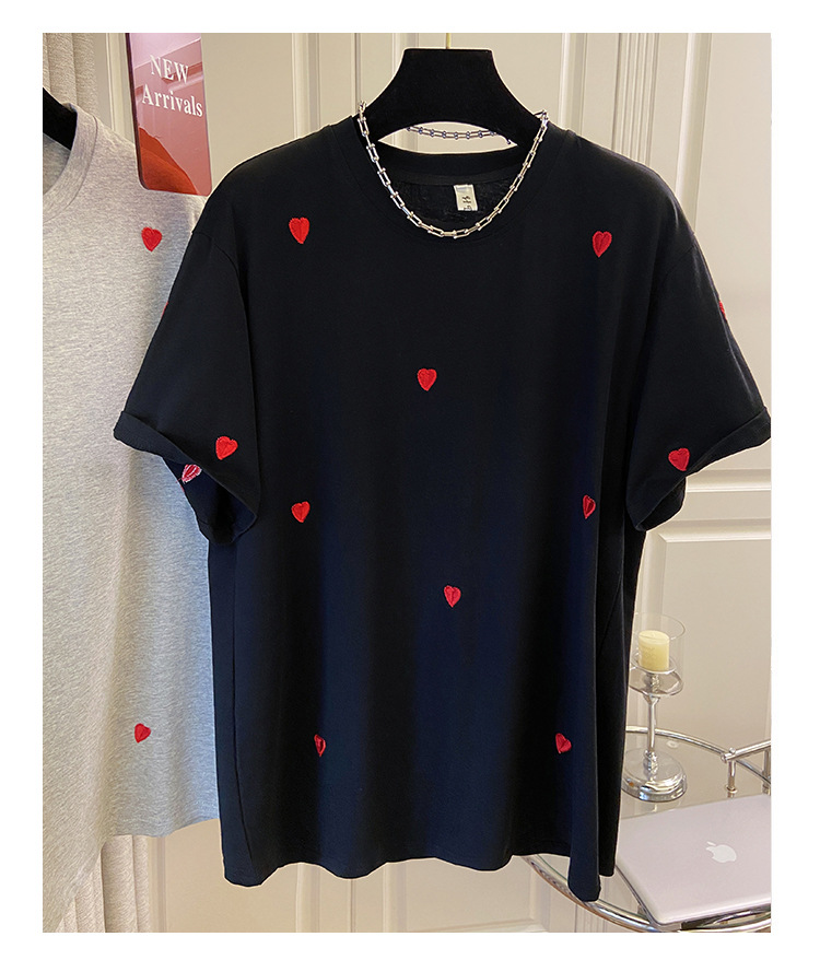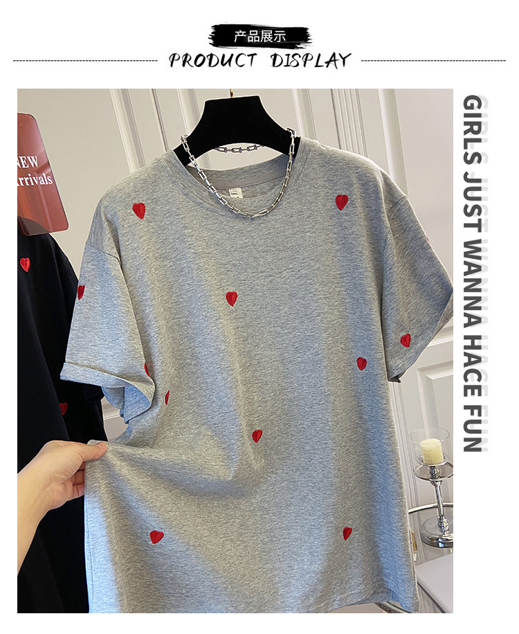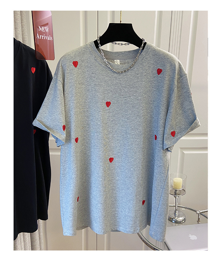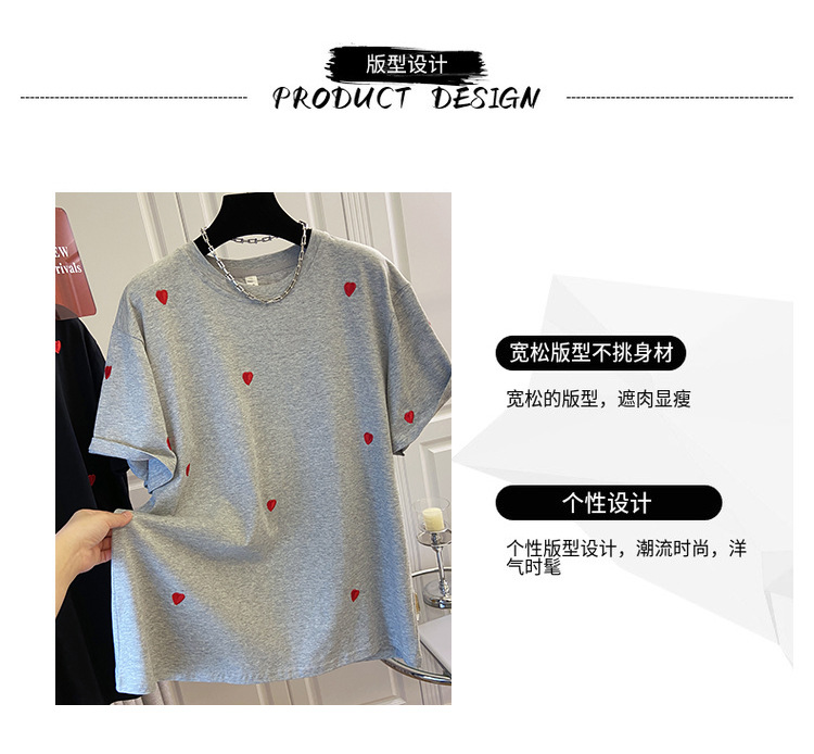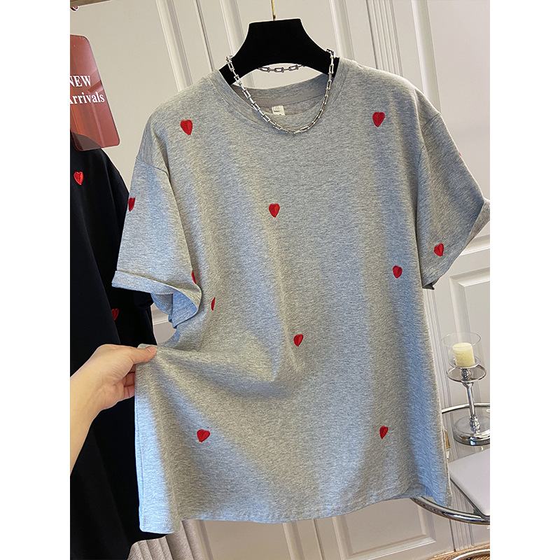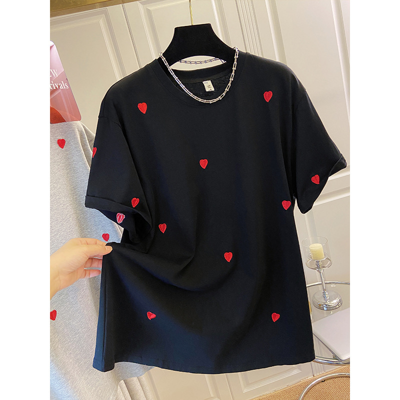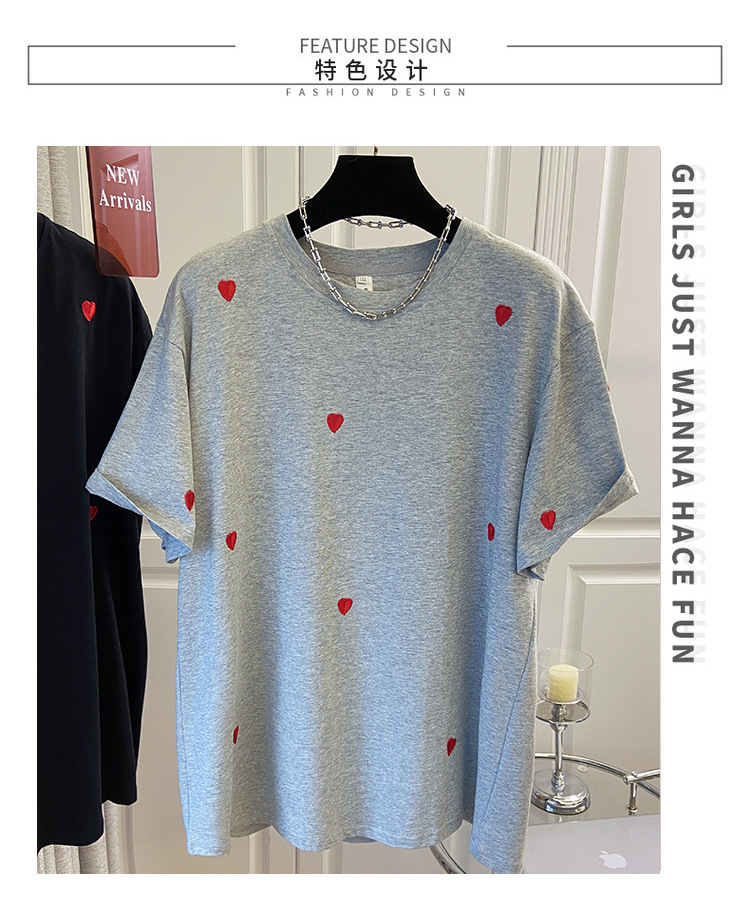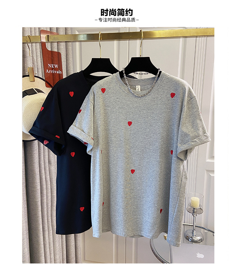 여름 뉴 에이지 감소 통근 반팔 티셔츠 탑 여성 통통녀 플러스 사이즈 루즈 러브 티셔츠 올매치 잘 어울립니다.스토어 가기