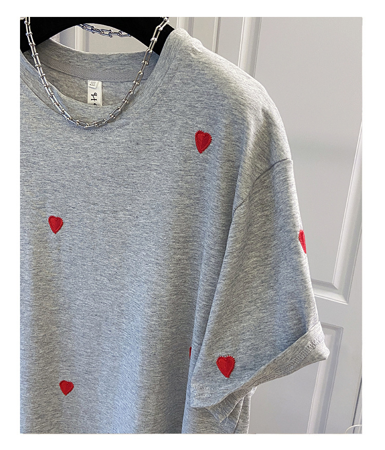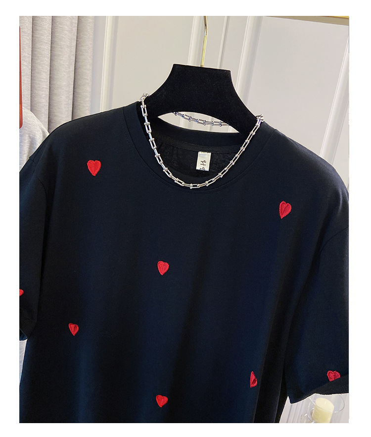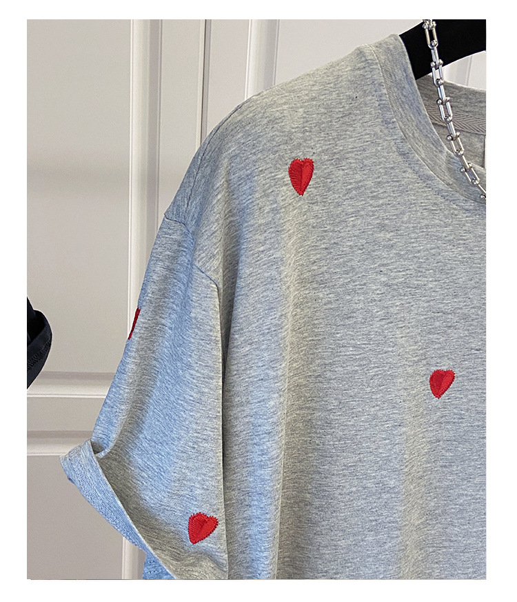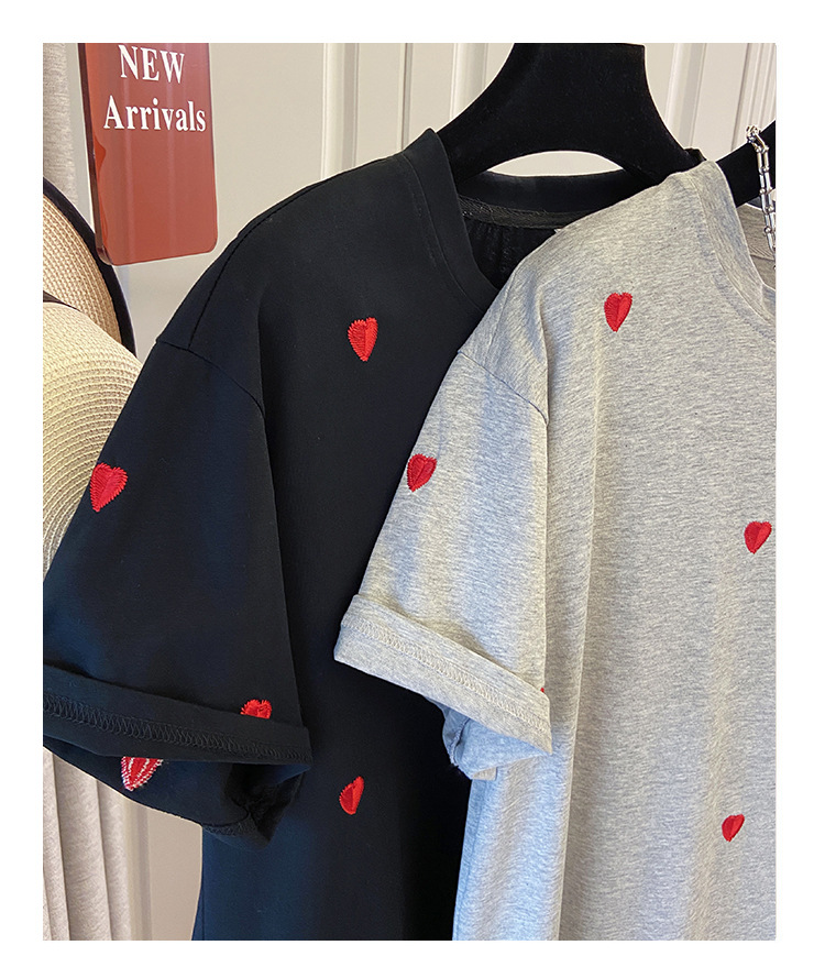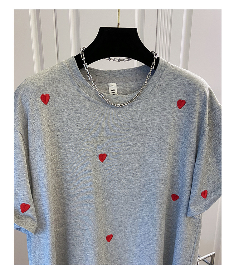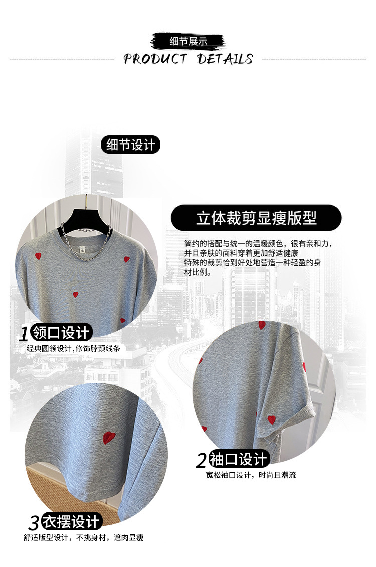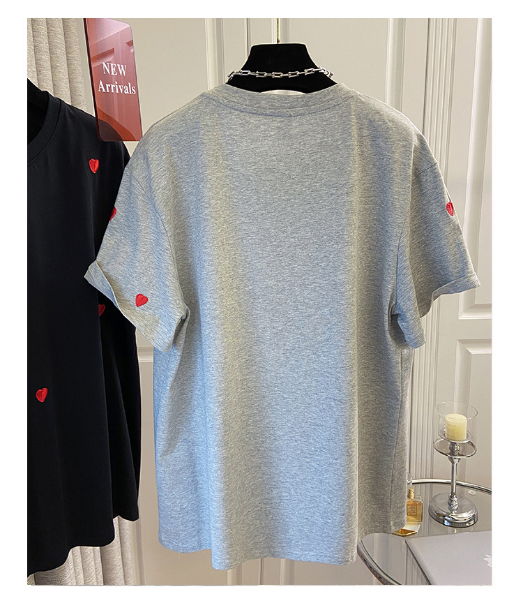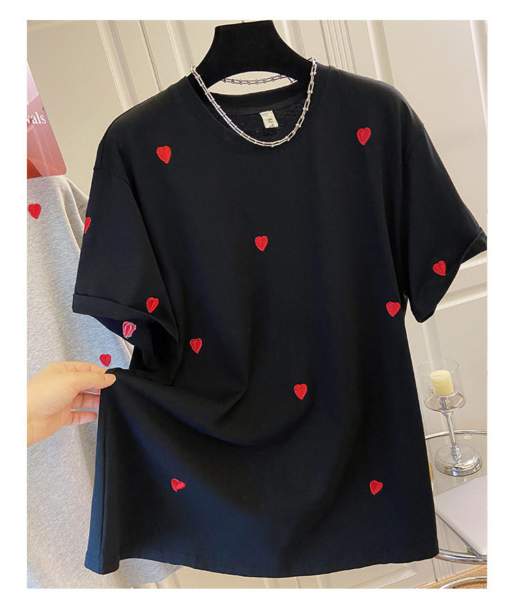 여름 뉴 에이지 감소 통근 반팔 티셔츠 탑 여성 통통녀 플러스 사이즈 루즈 러브 티셔츠 올매치 잘 어울립니다.스토어 가기