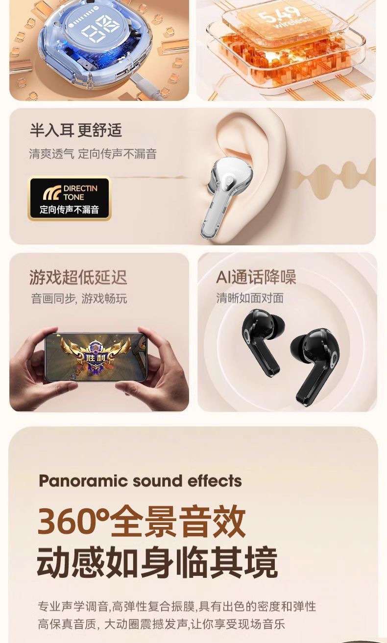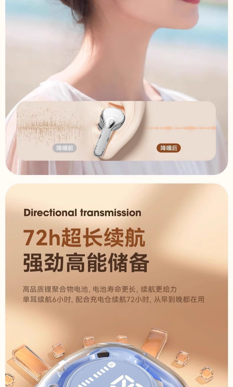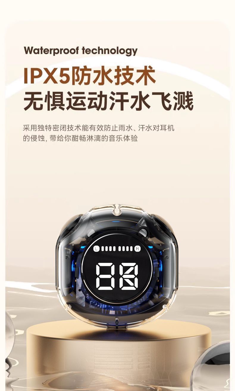 국경 간 새로운 2세대 Air39 투명 디지털 디스플레이 헤드폰 슈퍼 긴 배터리 수명 무선 블루투스 스포츠 이어폰