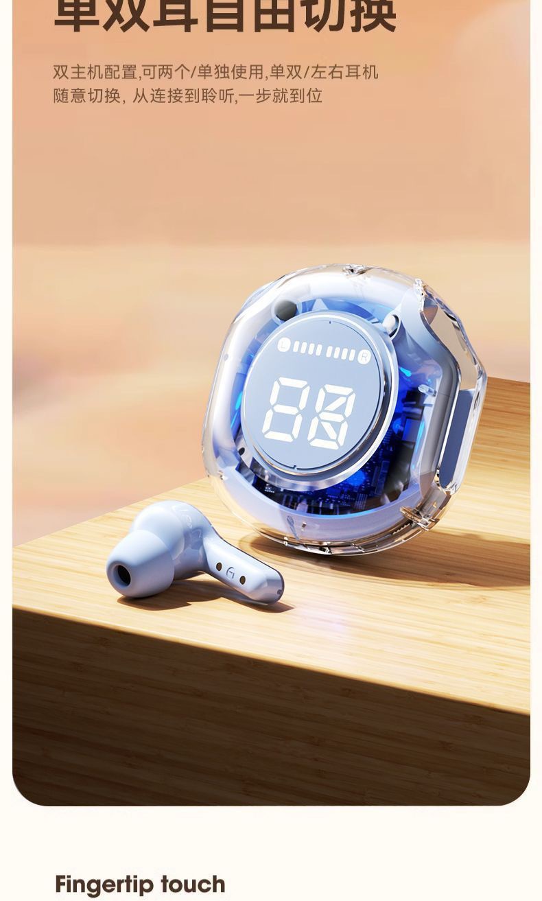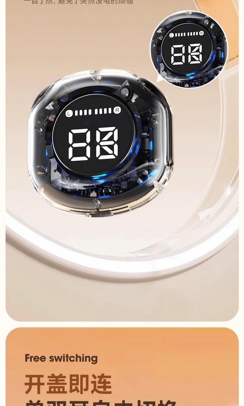 국경 간 새로운 2세대 Air39 투명 디지털 디스플레이 헤드폰 슈퍼 긴 배터리 수명 무선 블루투스 스포츠 이어폰스토어 가기