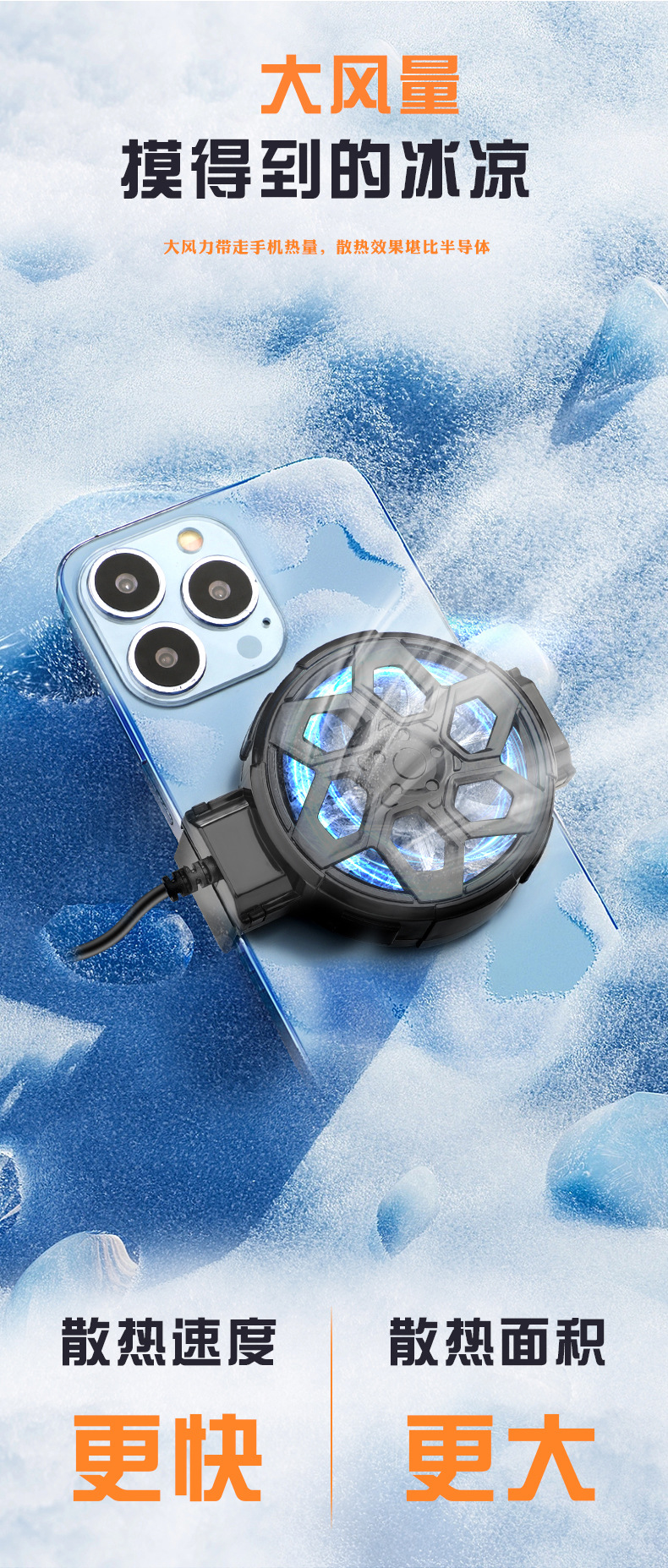 새로운 X18 휴대 전화 라디에이터 충전 공냉식 자동 3 단 조절 휴대 전화 빠른 냉각 라디에이터