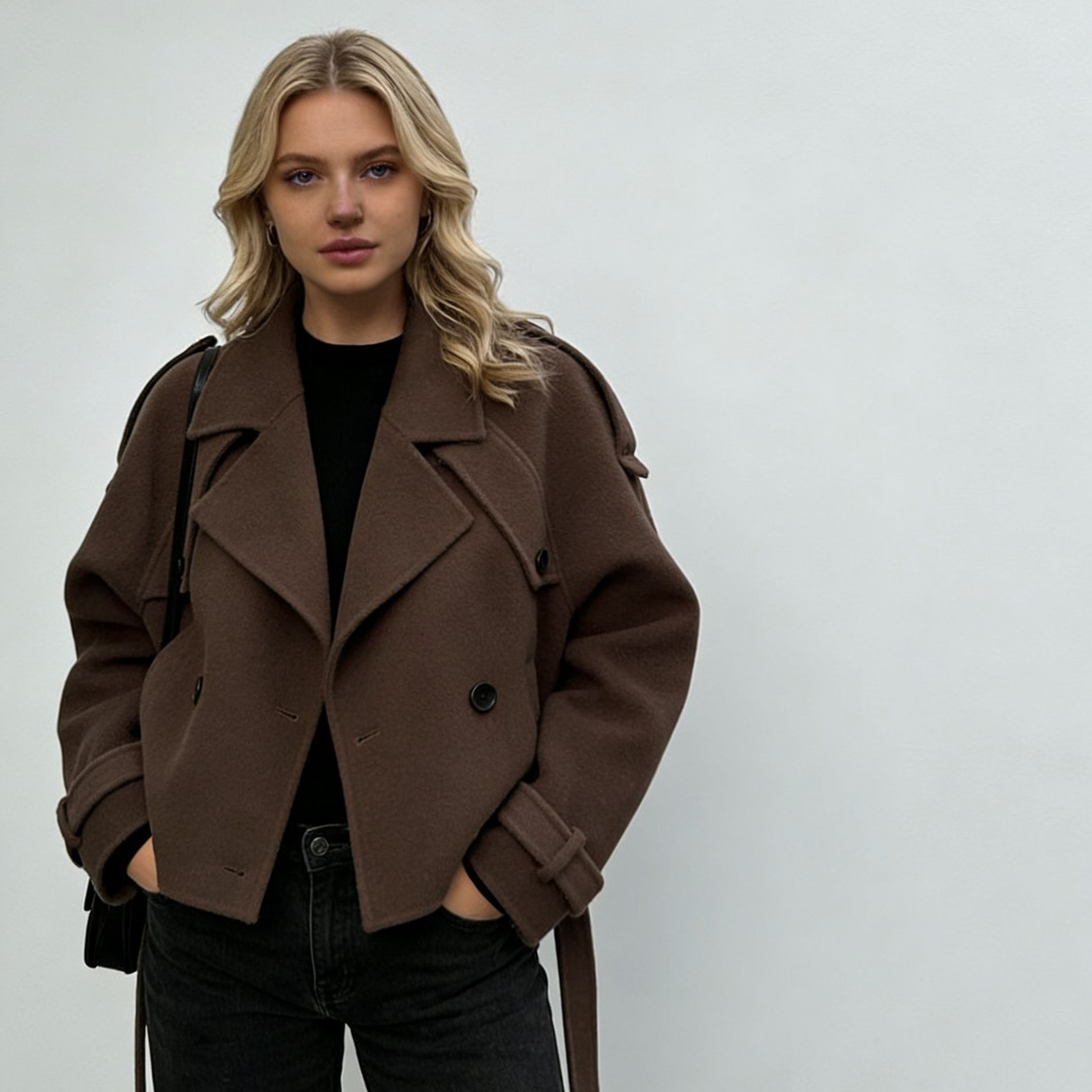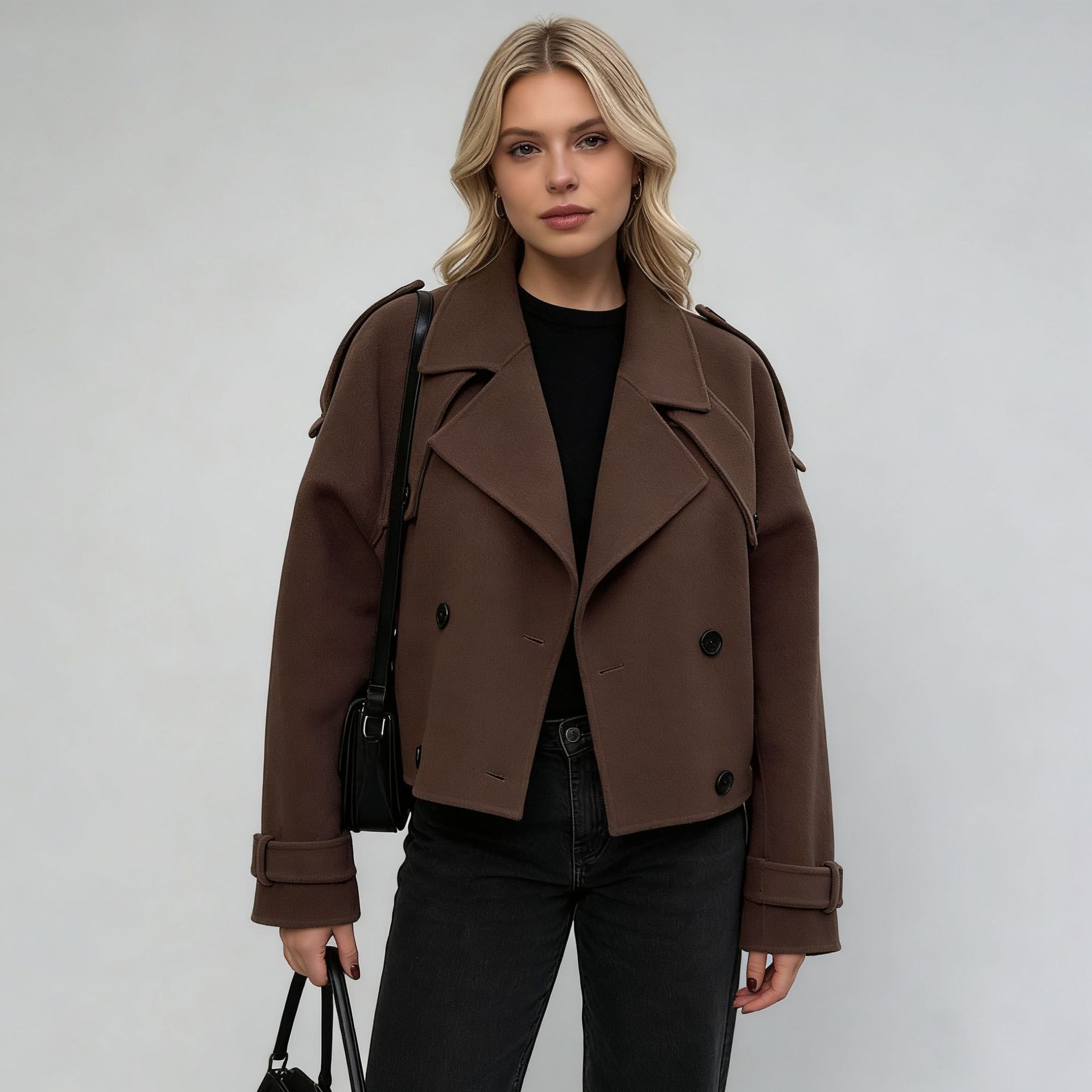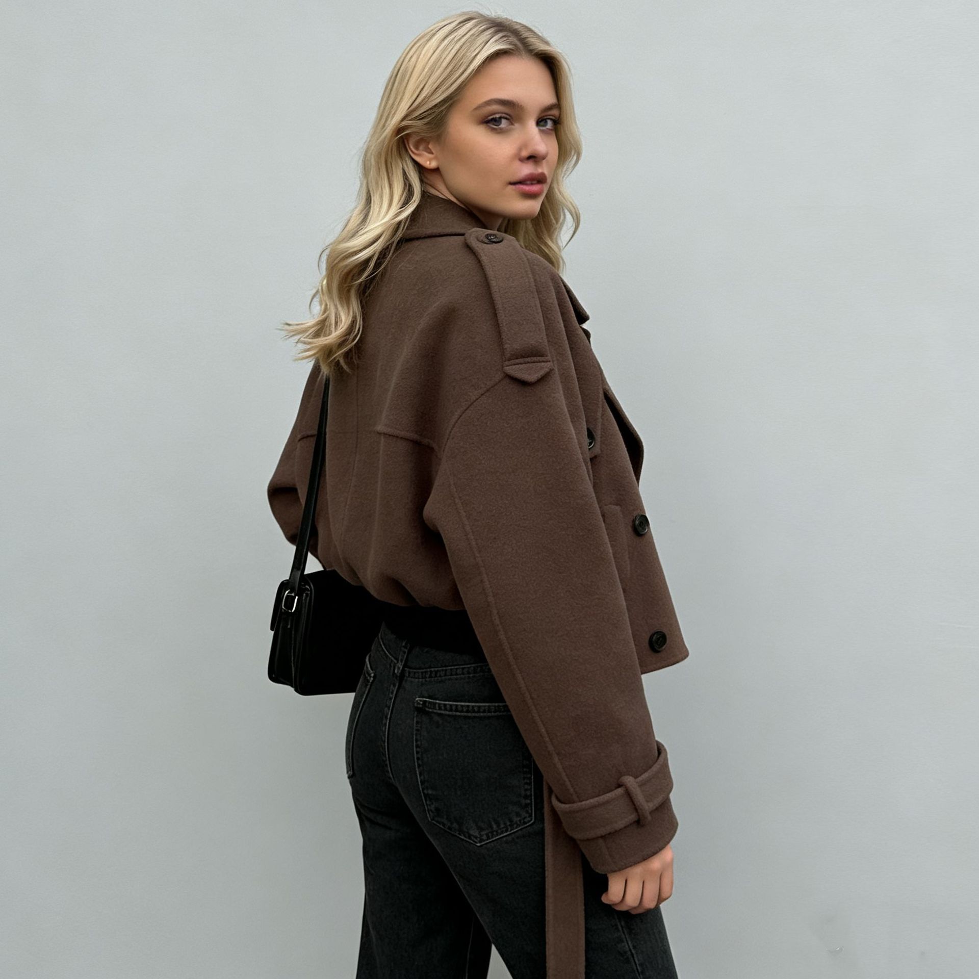 2025 새로운 국경 간 대외 무역 유럽과 미국 의류 아마존 대형 라펠 모직 패션 짧은 벨트 코트스토어 가기