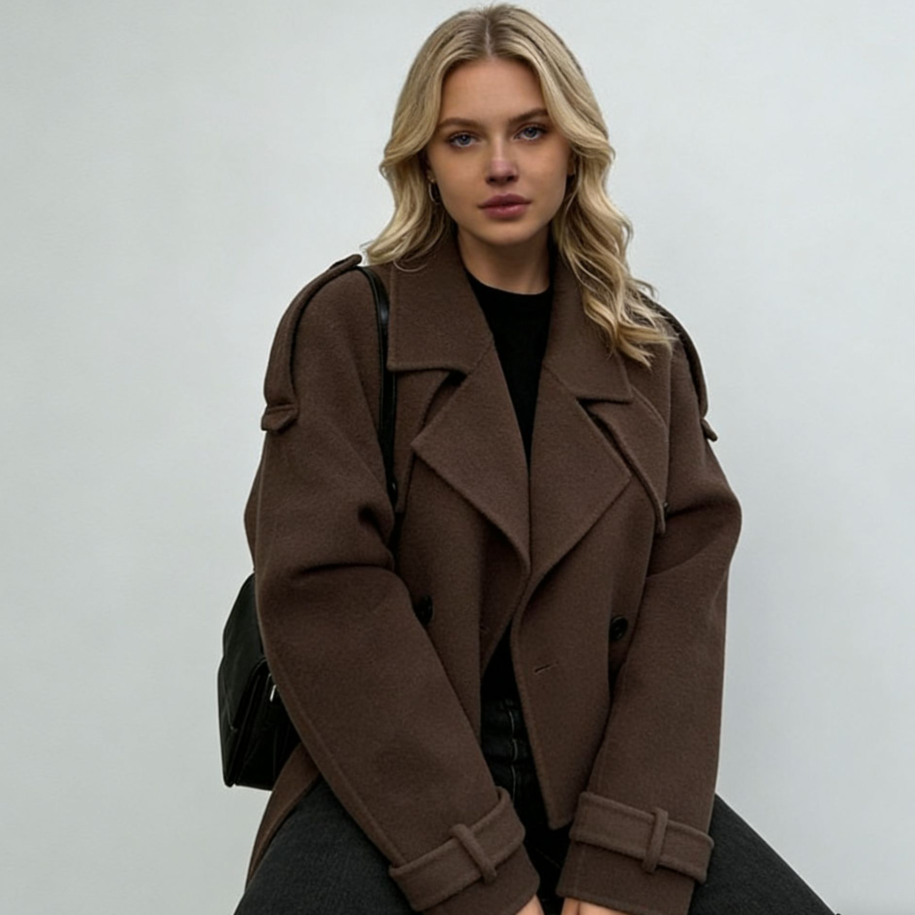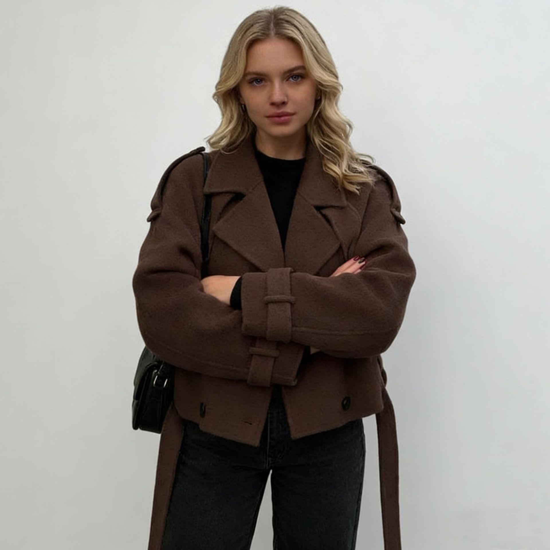 2025 새로운 국경 간 대외 무역 유럽과 미국 의류 아마존 대형 라펠 모직 패션 짧은 벨트 코트
