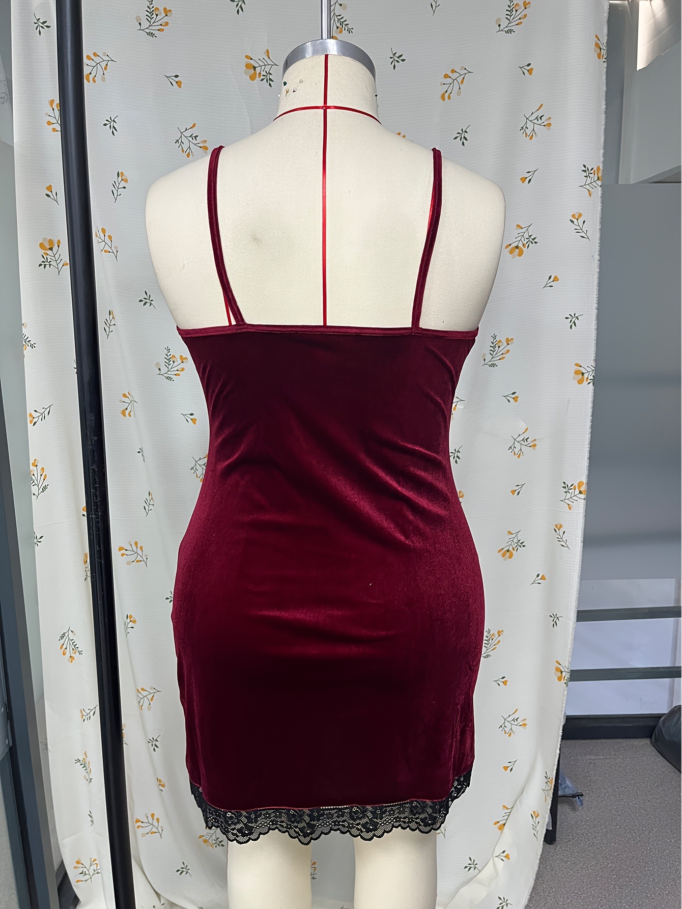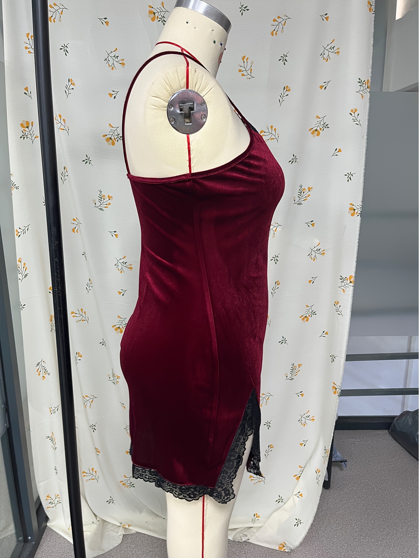 유럽과 미국의 국경 간 레이스 섹시한 부르고뉴 소녀의 짧은 스커트 서스펜더 슬리밍 슬릿 섹시한 엉덩이 커버 잠옷 드레스