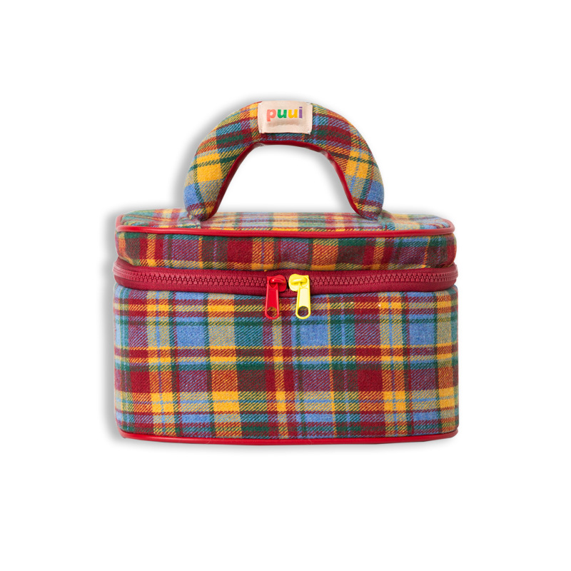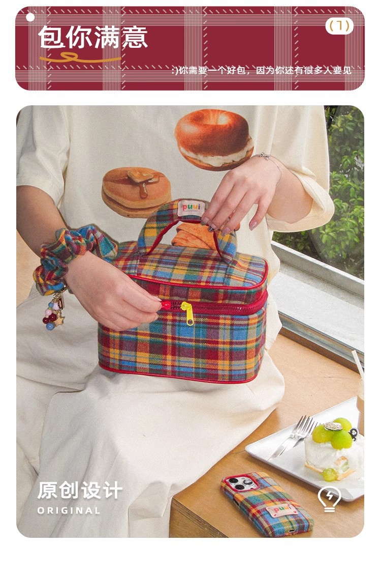 Puui 원래 화장품 가방 휴대용 대용량 레트로 격자 무늬 보관 가방 고급 센스 여행 세탁 가방