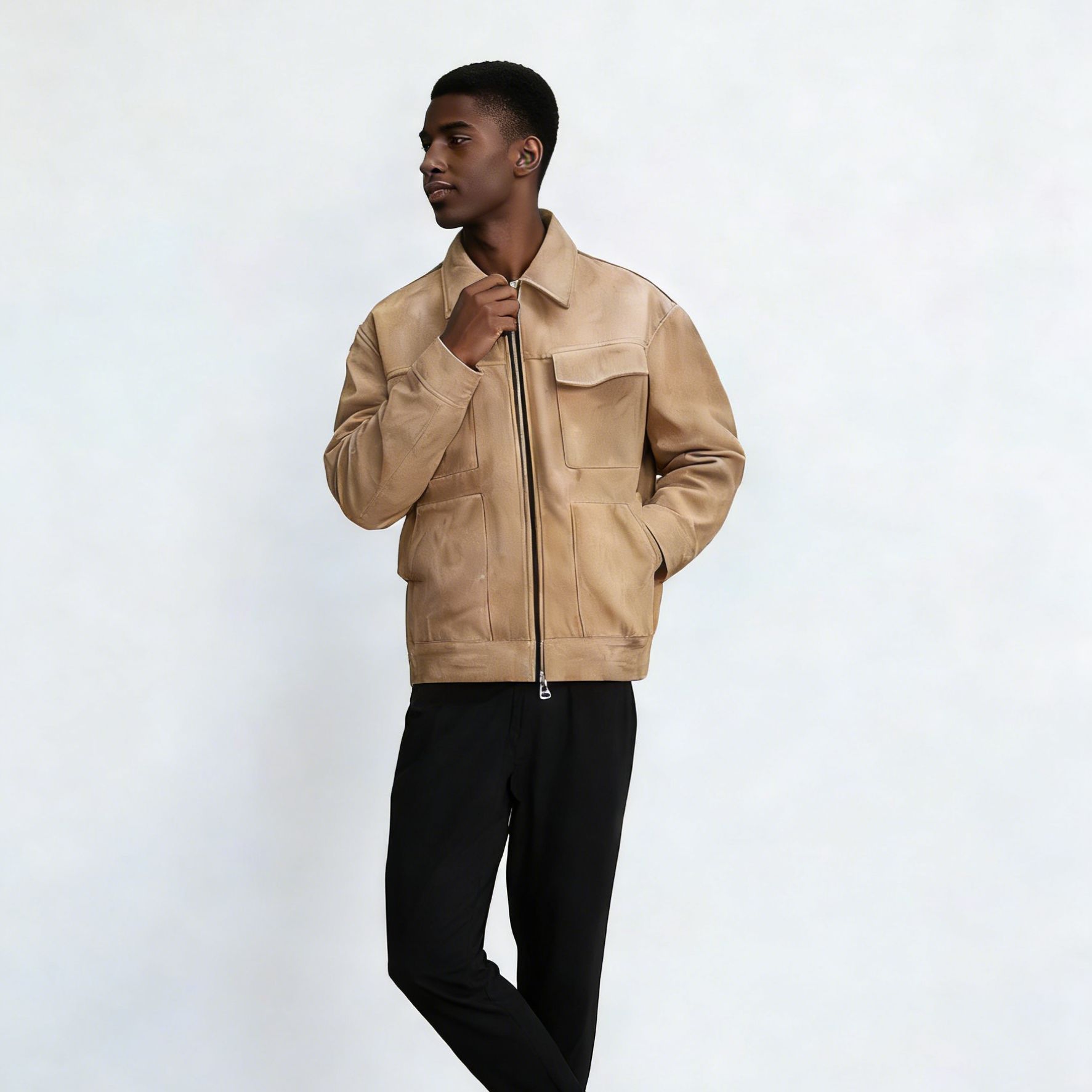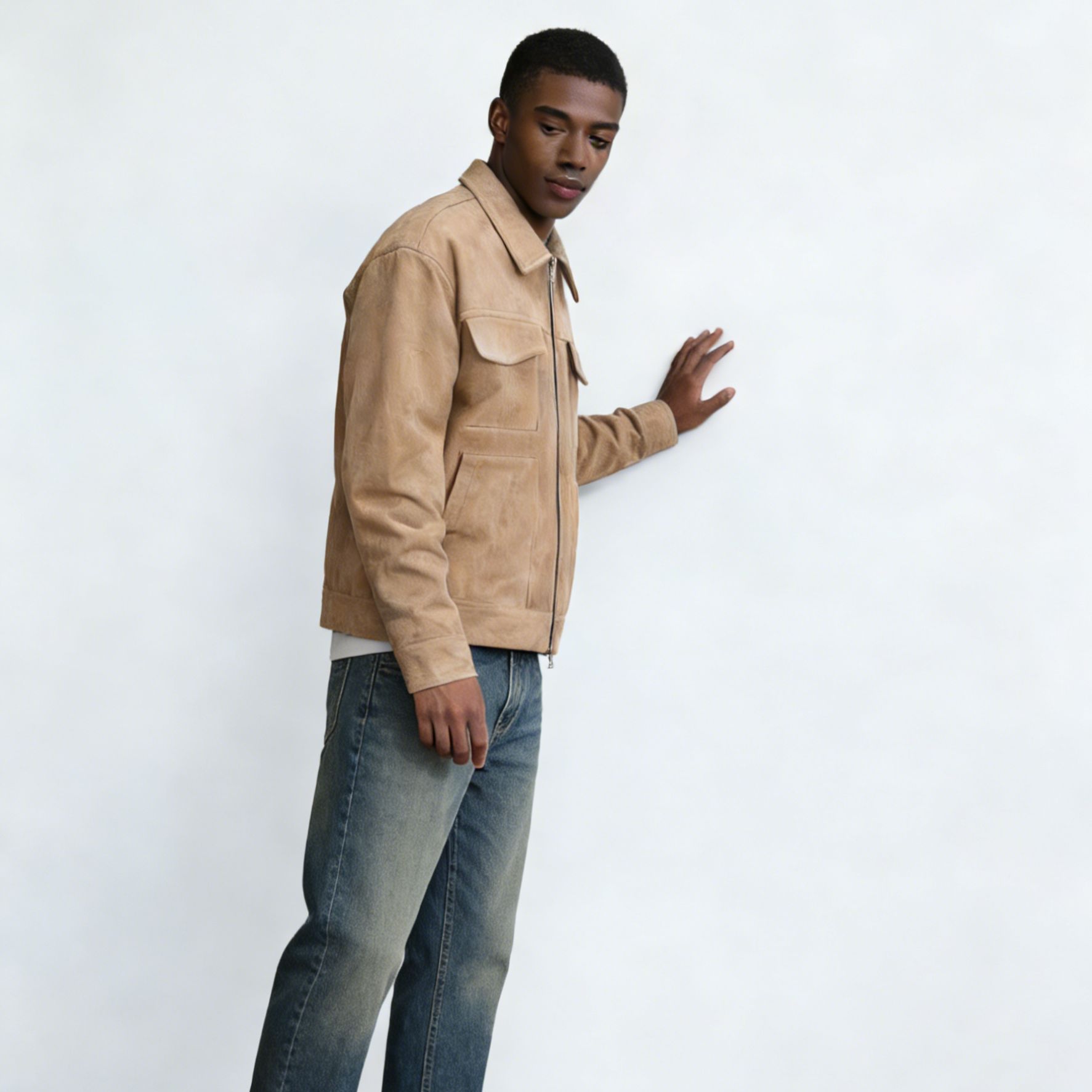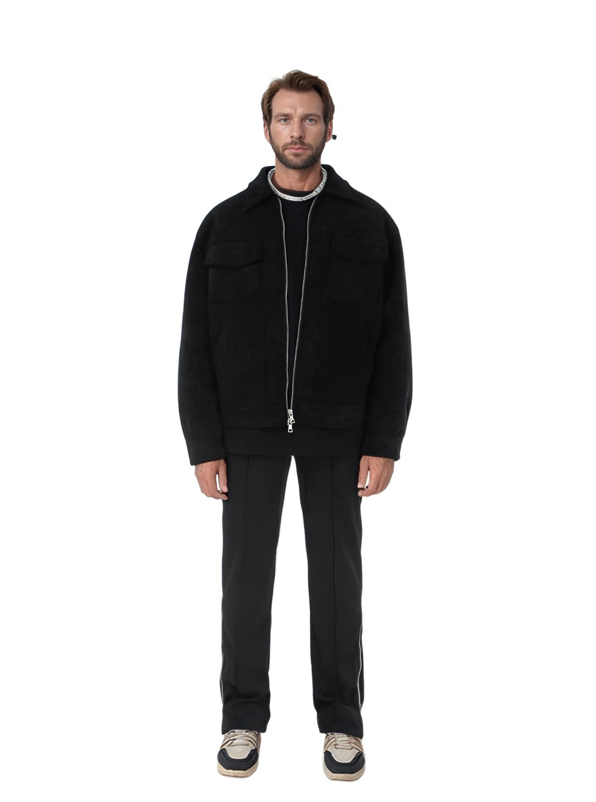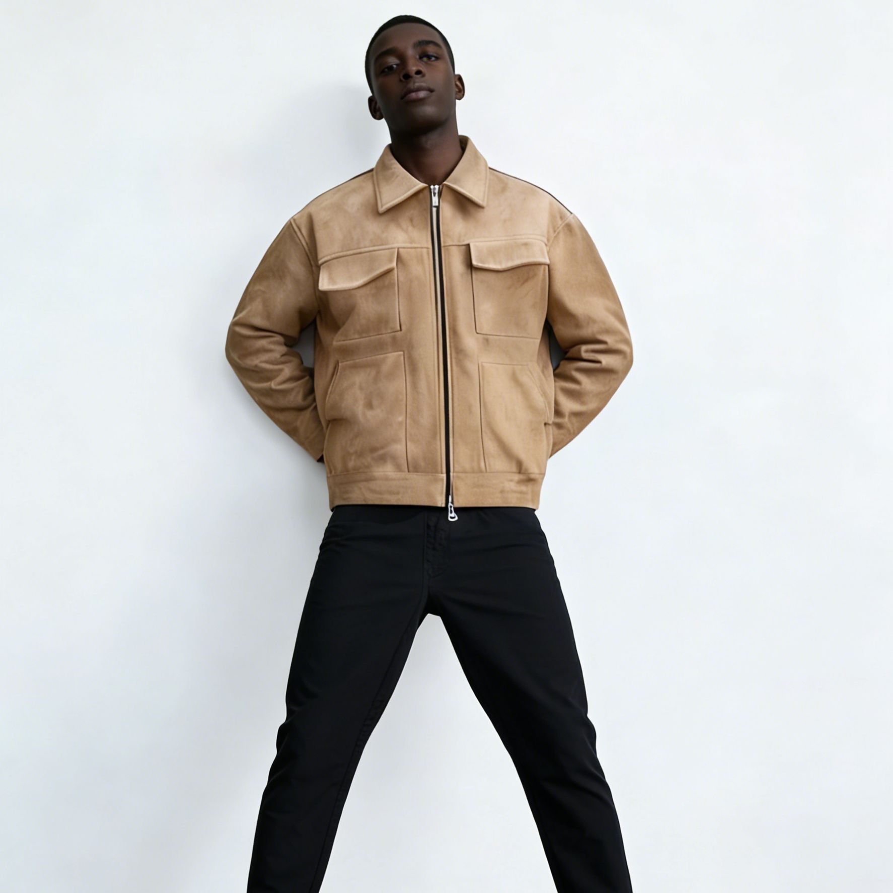 2025 크로스보더 남성 신작 재킷 유럽과 미국의 트렌디한 남성 재킷 사슴 가죽 벨벳 지퍼 대형 포켓 재킷