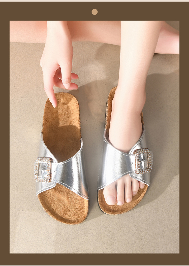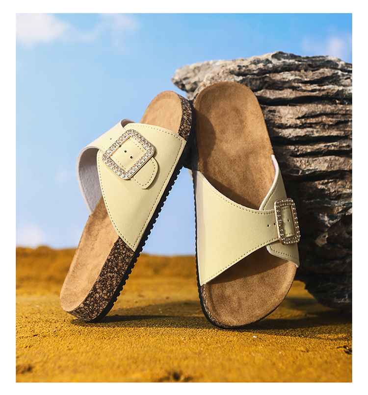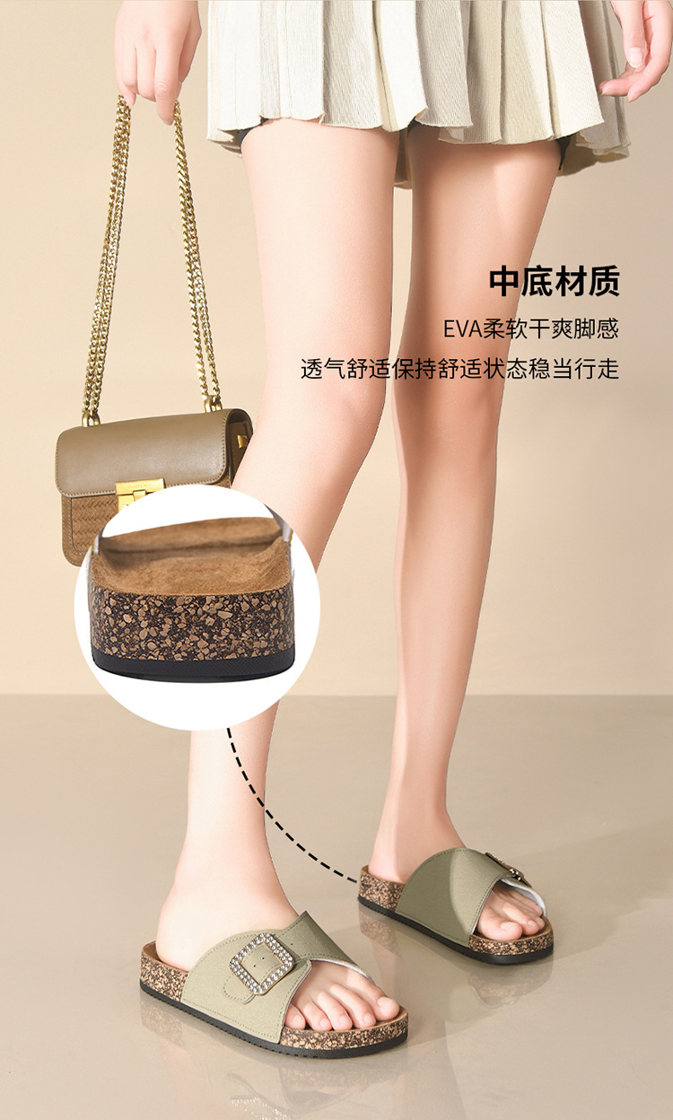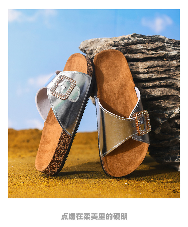 여성용 두꺼운 밑창 Birkenstock 샌들, 2024 여름 신작 복고풍 캐주얼 벨트 버클 오픈 토 슬리퍼