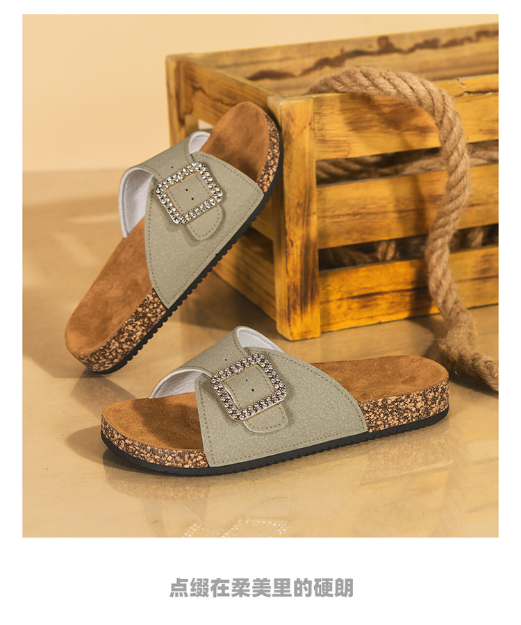 여성용 두꺼운 밑창 Birkenstock 샌들, 2024 여름 신작 복고풍 캐주얼 벨트 버클 오픈 토 슬리퍼스토어 가기