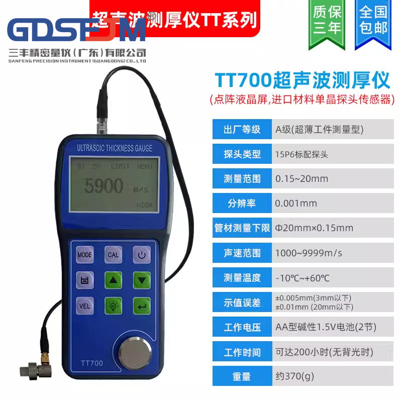 • 초음파 두께 측정기 TT700 초박형 0.15-20mm