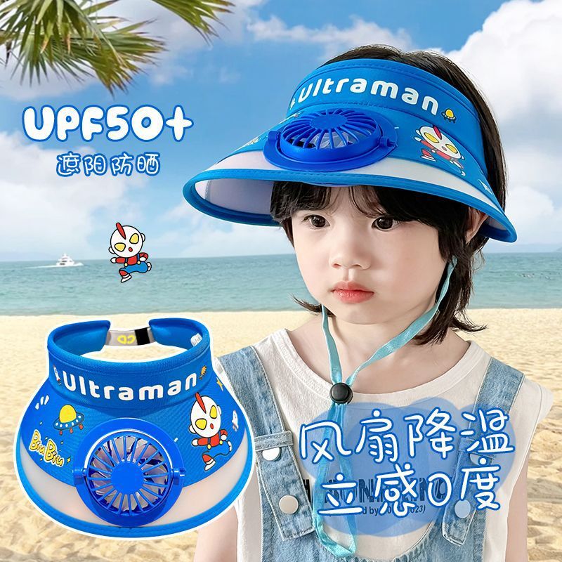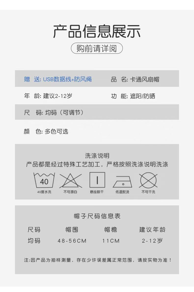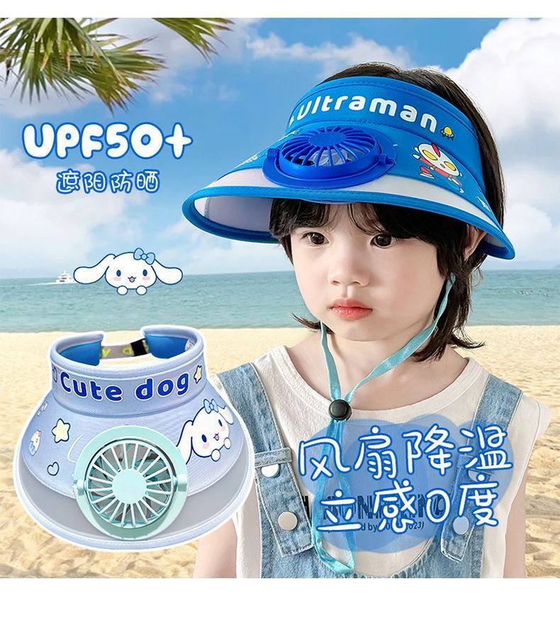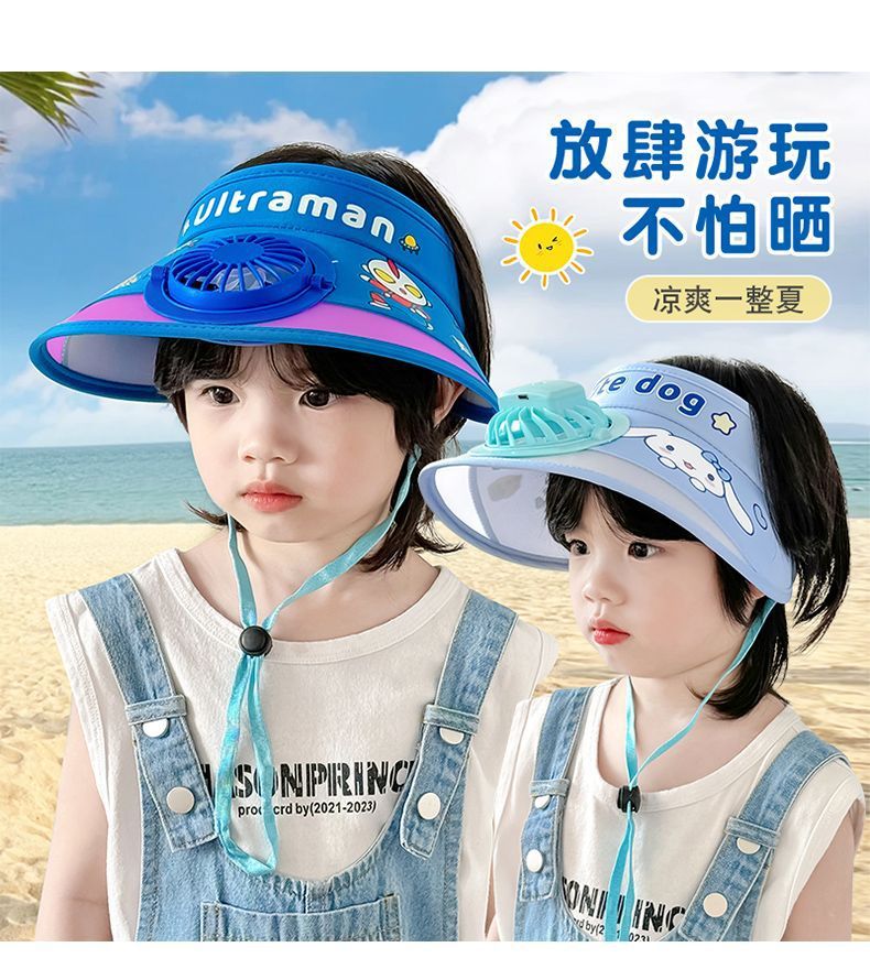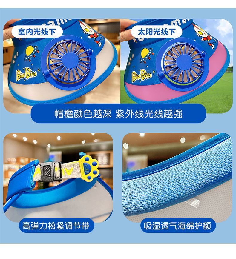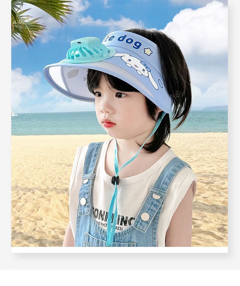 어린이 USB 충전식 팬 모자 여름 태양 모자 야외 여행 선 스크린 모자 만화 남녀 빅 브림 후드스토어 가기