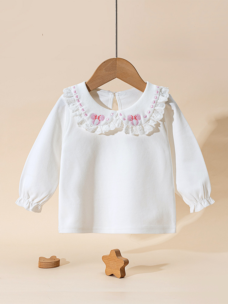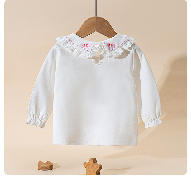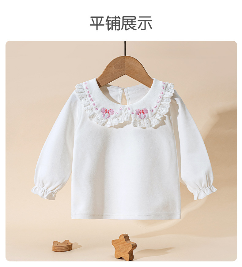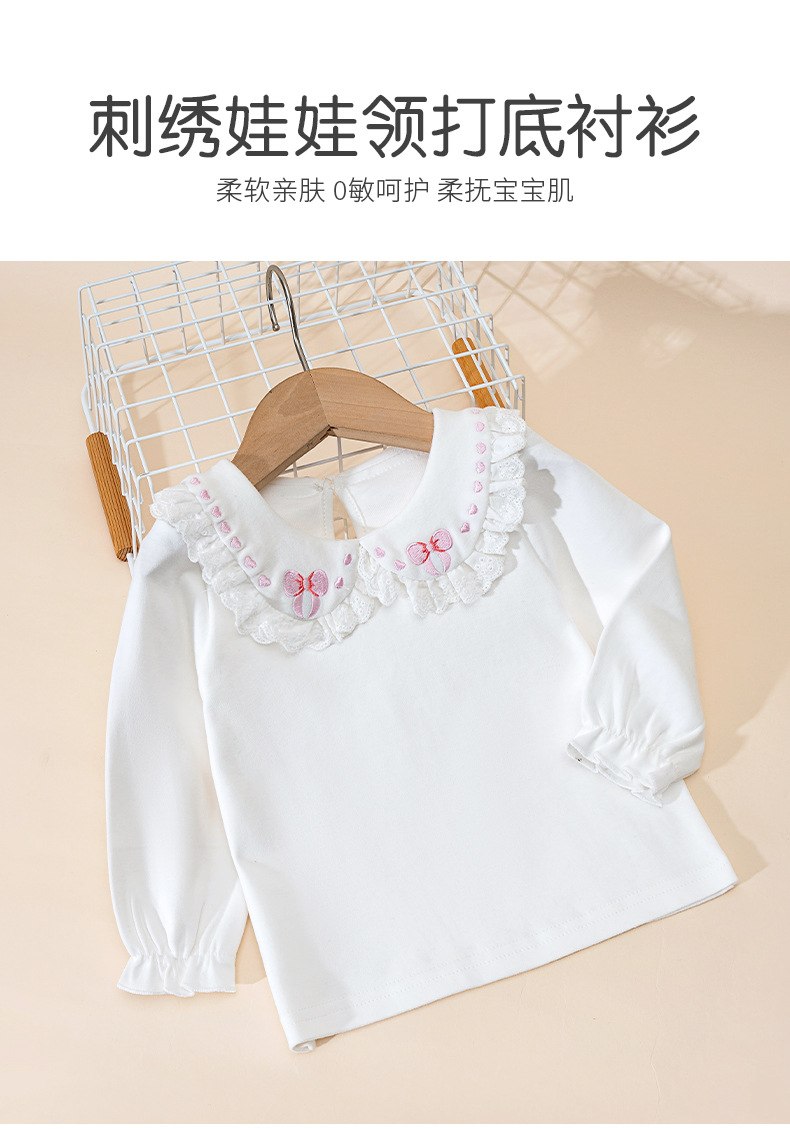 인형 칼라 소녀의 봄과 가을 옷깃베이스 셔츠 어린이 단색 면 통기성 화이트 셔츠 아기의 올 매치 타이드 티셔츠