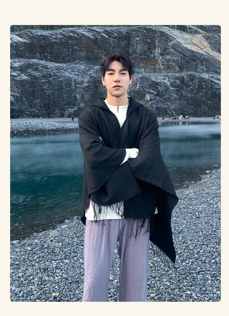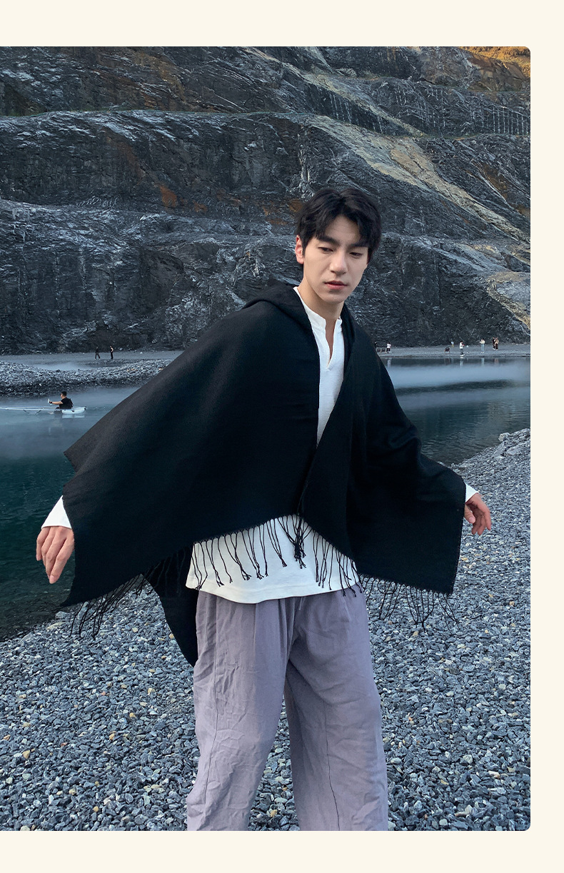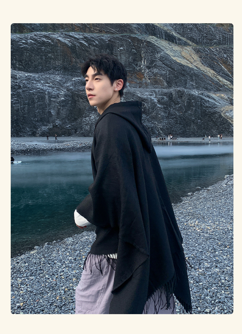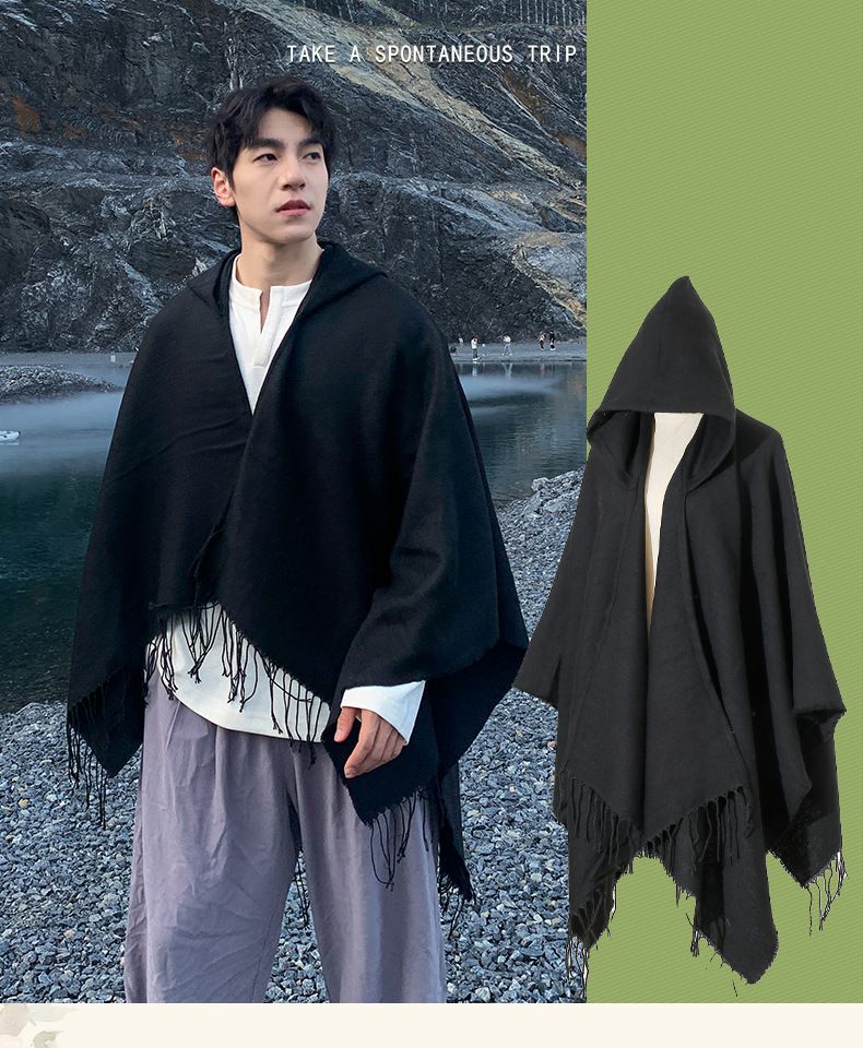 대학 스타일 양모 망토 남성 격자 무늬 접합 망토 재킷 가을, 겨울 복고풍 문학 청소년 남성 의류스토어 가기