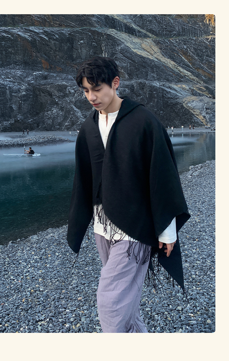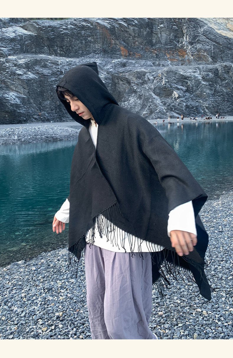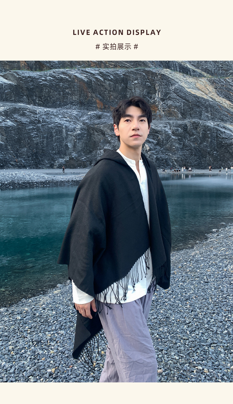 대학 스타일 양모 망토 남성 격자 무늬 접합 망토 재킷 가을, 겨울 복고풍 문학 청소년 남성 의류