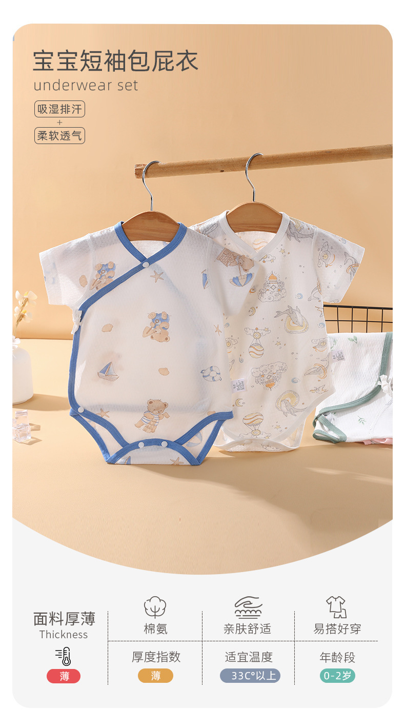 아기의 반팔 가방 뚱뚱한 옷 여름 얇은 순면 뼈없는 배꼽 보호 아기의 몸 옷 신생아 용 여름 옷스토어 가기