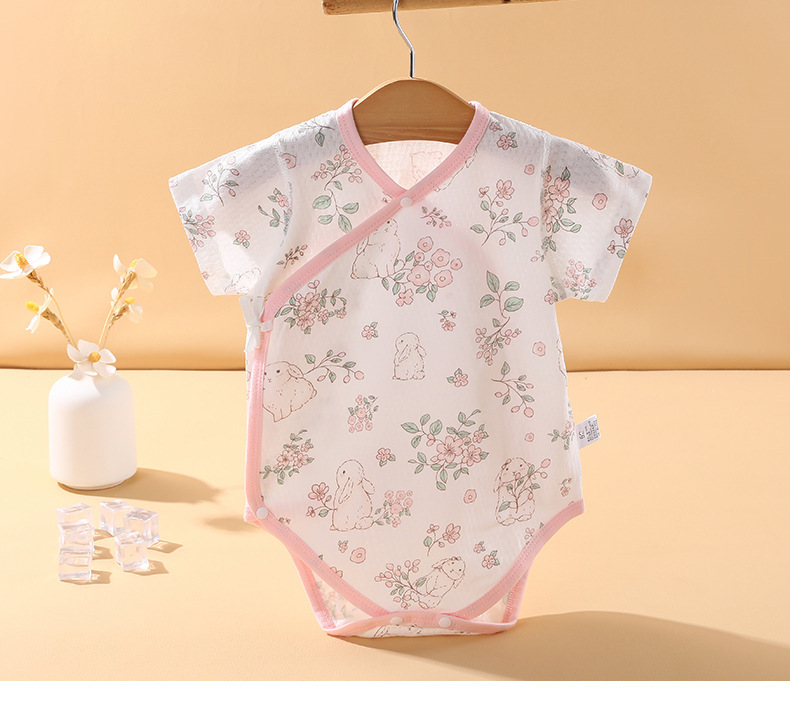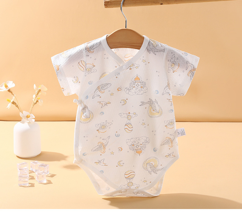 아기의 반팔 가방 뚱뚱한 옷 여름 얇은 순면 뼈없는 배꼽 보호 아기의 몸 옷 신생아 용 여름 옷