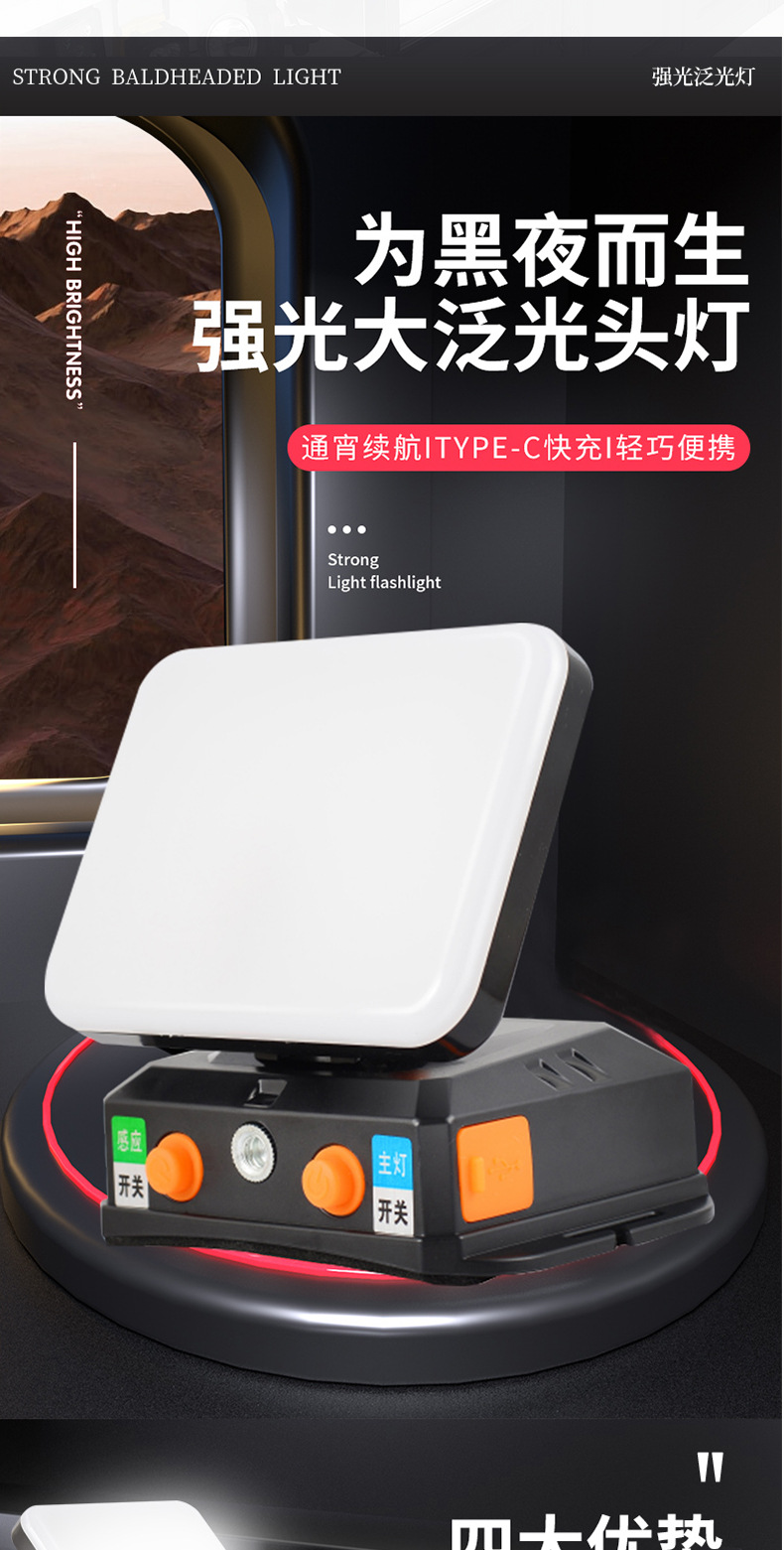 강한 전조등, 넓은 지역 투광 조명, 헤드 장착 초경량 충전, 매우 긴 내구성, 리튬 배터리, 야외 바다 운전 램프