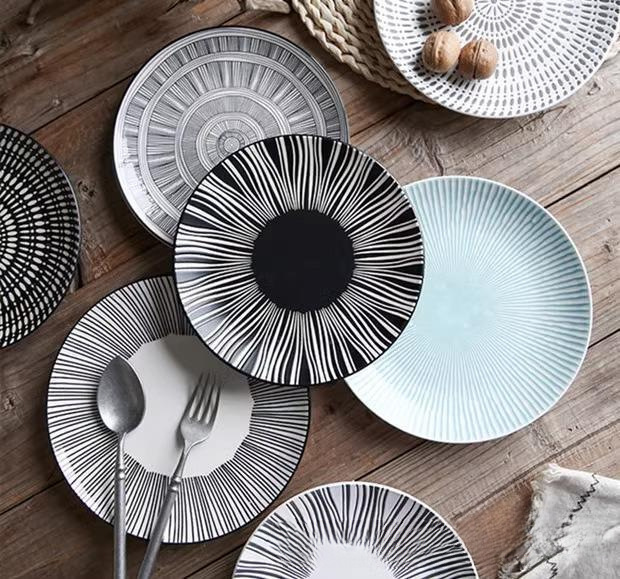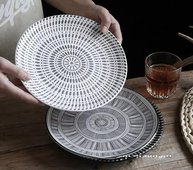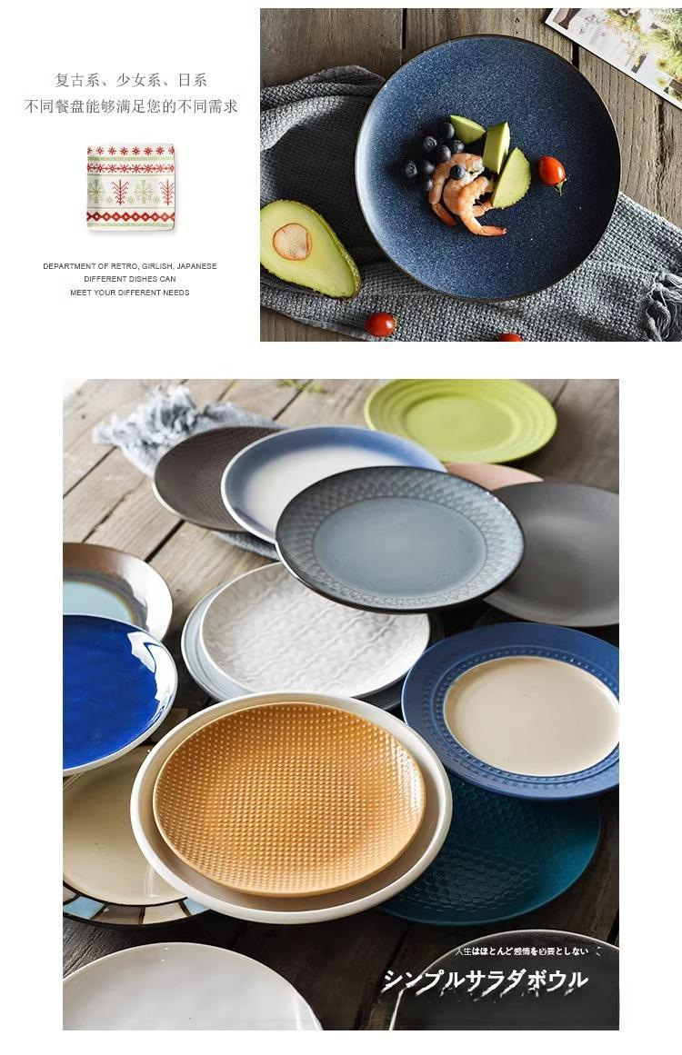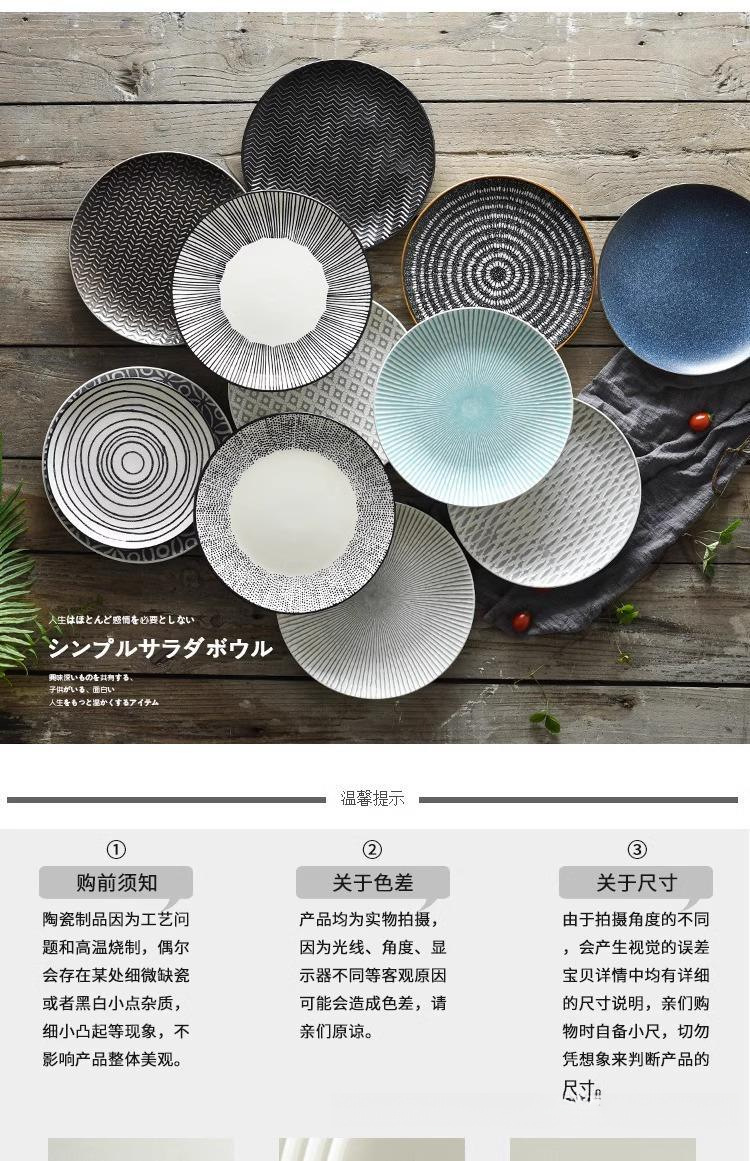 마이크로 블미드 일본식 접시 가정용 접시 캡 플레이트 대형 수프 플레이트 라운드 언더 유약 컬러 플랫 플레이트 스테이크 식탁 국수 그릇스토어 가기