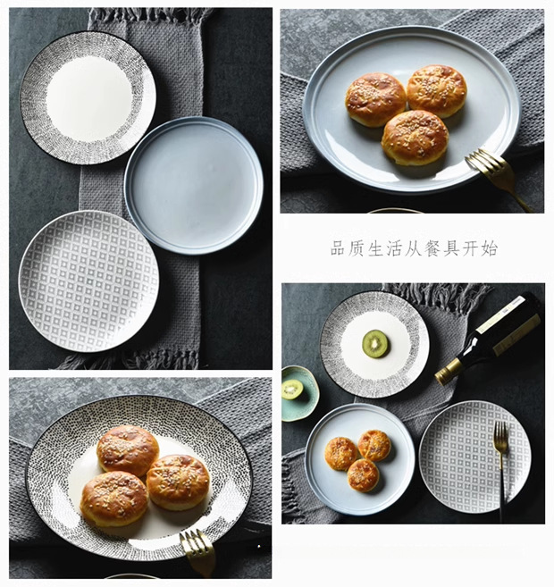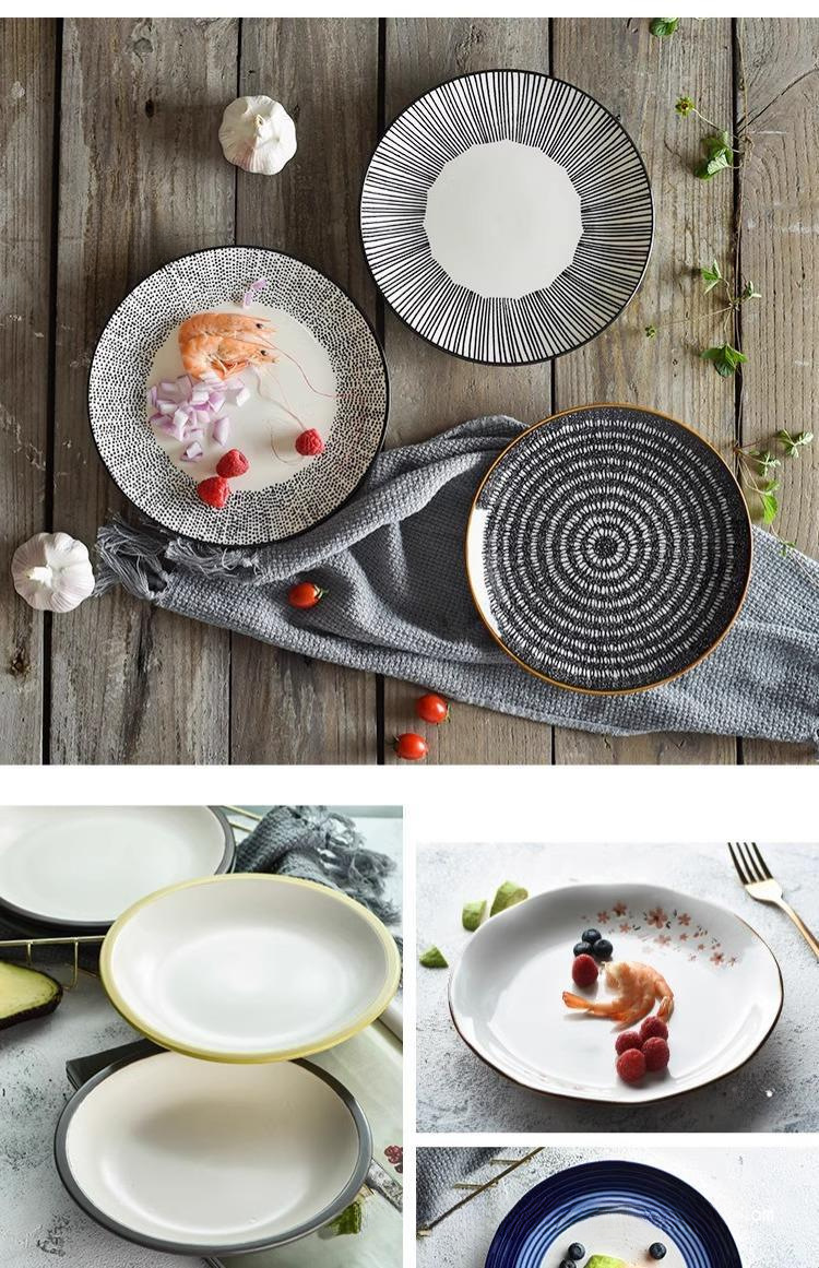 마이크로 블미드 일본식 접시 가정용 접시 캡 플레이트 대형 수프 플레이트 라운드 언더 유약 컬러 플랫 플레이트 스테이크 식탁 국수 그릇