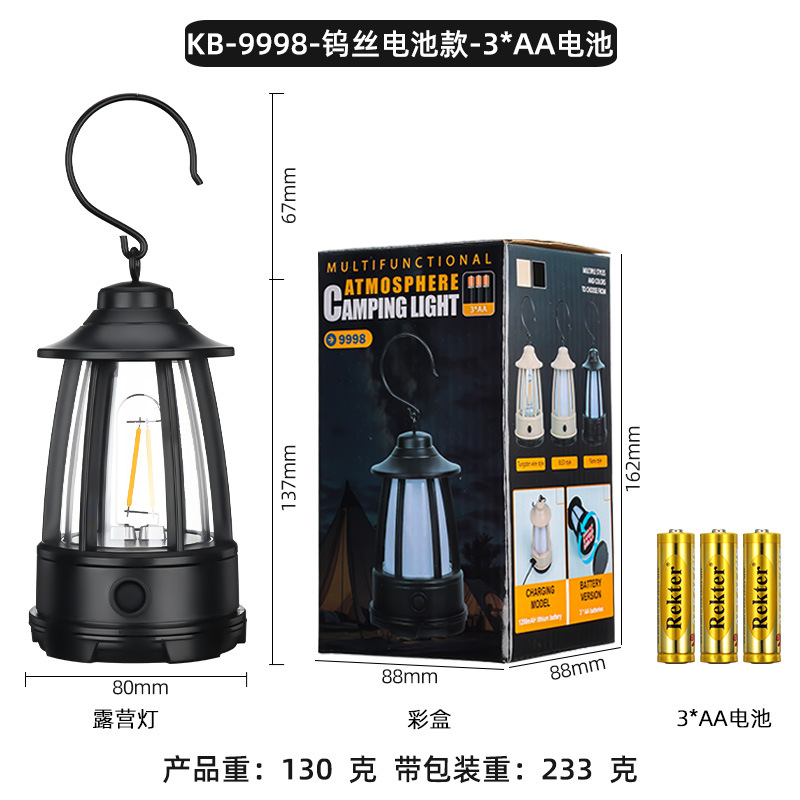 • KB-9998 캠핑 라이트 텅스텐 필라멘트 배터리 모델