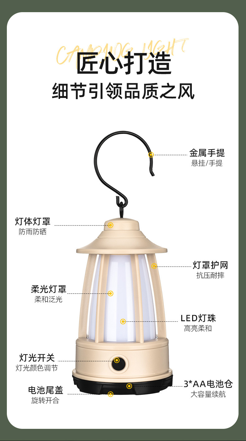 새로운 야외 다기능 캠핑 램프 흰색 따뜻한 빛 충전식 분위기 램프 조명 후크 말 랜턴 긴 수명 텐트 램프스토어 가기